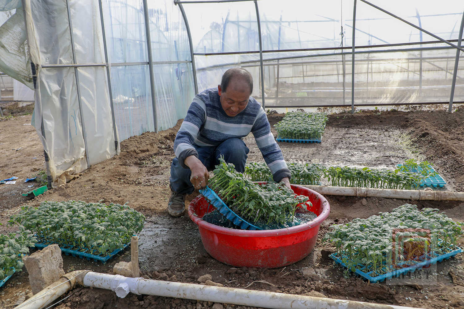 野川镇圪台村:西红柿苗移栽忙