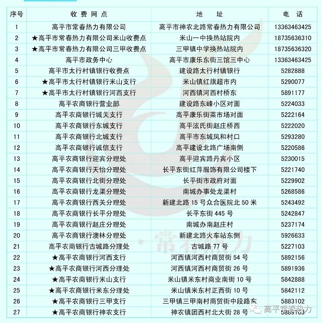 2. 市常春热力有限公司未委托任何单位或者个人代收取采暖费(部分新建小区除外),请广大热用户通过公司营业厅或授权银行网点进行缴费,也可通过“高平常春热力”公众微信号或支付宝网上平台进行缴费。除此以外,任何人员以代收、折扣、免除部分费用等为由收取用户采暖费均系恶意诈骗行为,敬请广大热用户务必保持理性,谨防上当受骗。