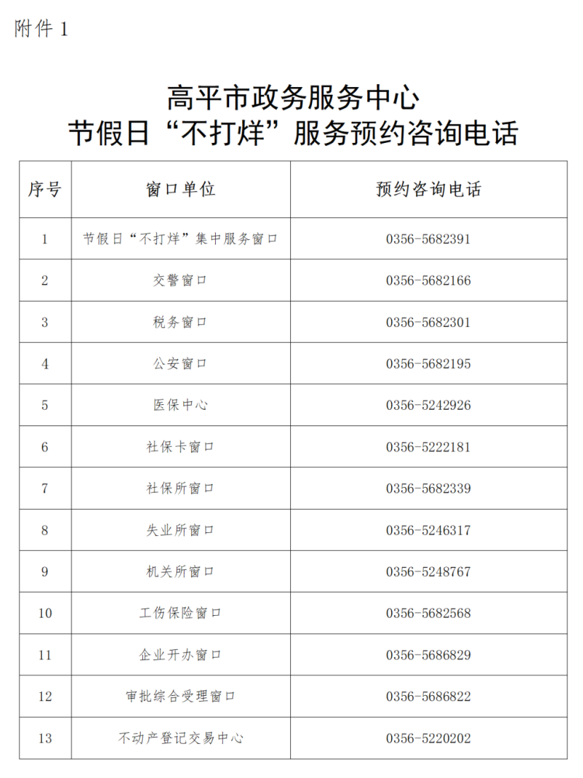 1. 节假日“不打烊”政务服务窗口预约咨询电话