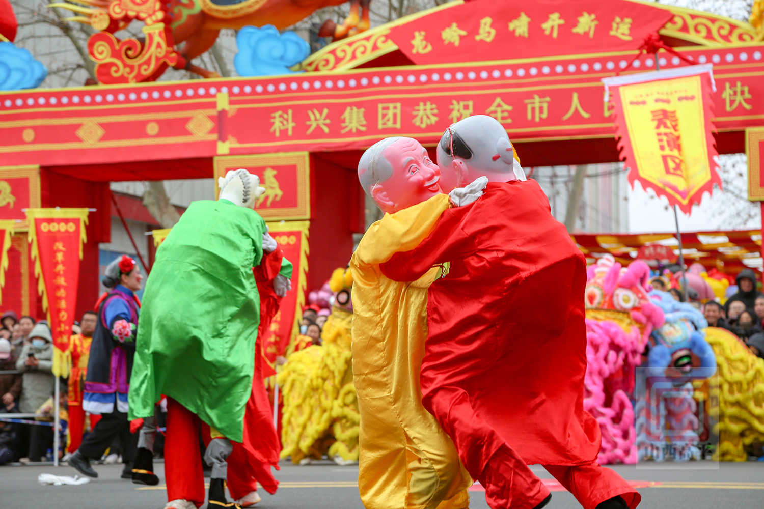 在移动岗、邮政岗、市政府门前广场,人潮涌动、欢声鼎沸。舞龙舞狮、望云龙灯、高跷战马等表演喜庆欢腾,金龙腾跃、彩狮起舞、战马驰骋,热闹红火、气势恢宏的表演将喜闹元宵的年味拉满。二鬼扳跌、媒婆、猪八戒背媳妇等表演诙谐幽默、妙趣横生,引得市民捧腹大笑、掌声不断。机器人、电子狗舞狮表演,科技范满满,格外吸睛。紧接着,鼓舞、抬花轿、腰鼓、秧歌等表演轮番上阵,表演者身着节日盛装,踏着欢快的节拍,或扭,或舞,或跑,或跳,演绎出闹社火喜庆热烈、豪迈奔放的欢腾劲儿。现场掌声、欢呼声此起彼伏,交织成欢乐的海洋,市民们沉浸其中过足元宵瘾。