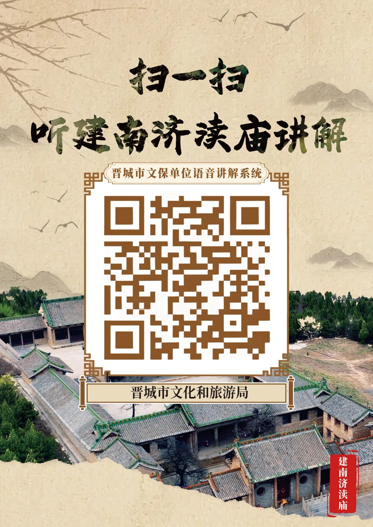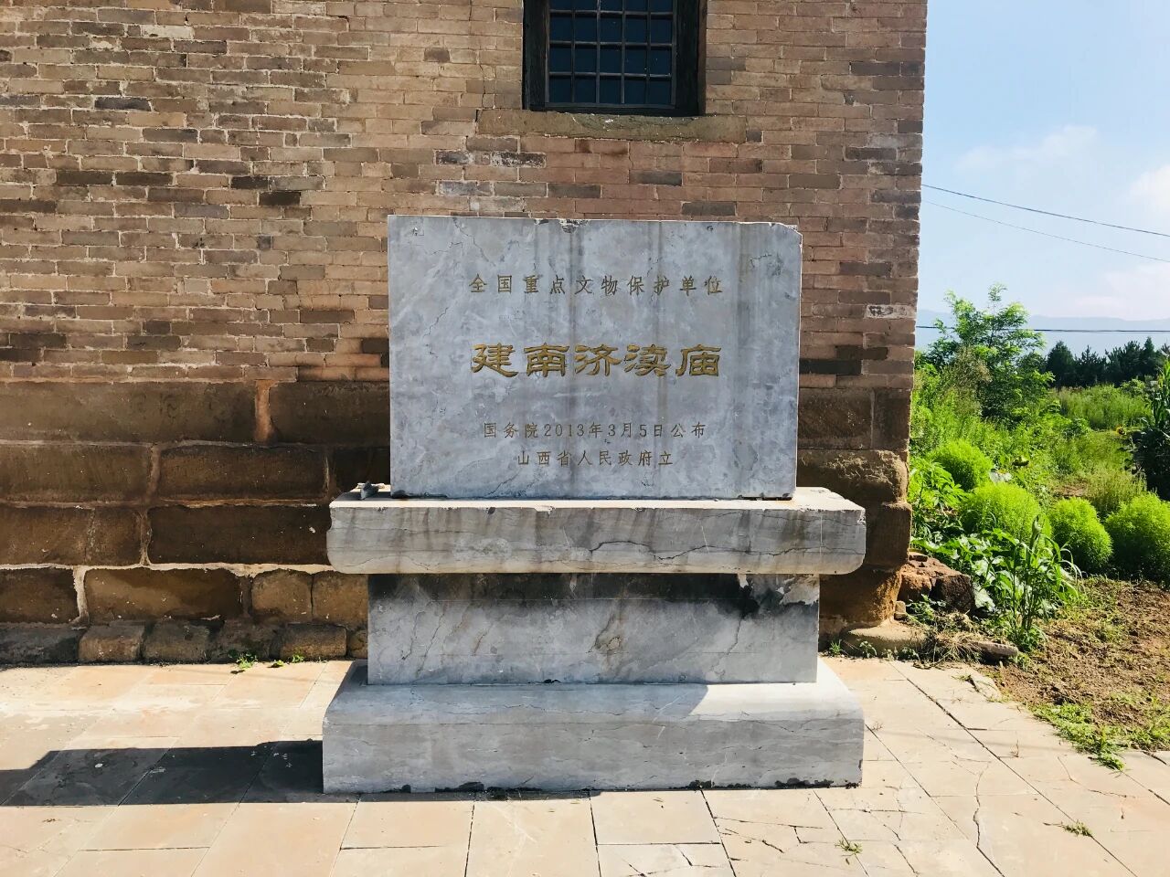 济渎庙,位于高平市建宁乡建南村翠屏山巅。创建年代不详,明清时期有重修。坐北朝南,三进院落,中轴线上建有山门、献殿、中殿、后殿,两侧为便门、夹殿、耳殿、钟楼、鼓楼、配殿。其中中殿和后宫为元代建筑,其余皆为明清建筑。