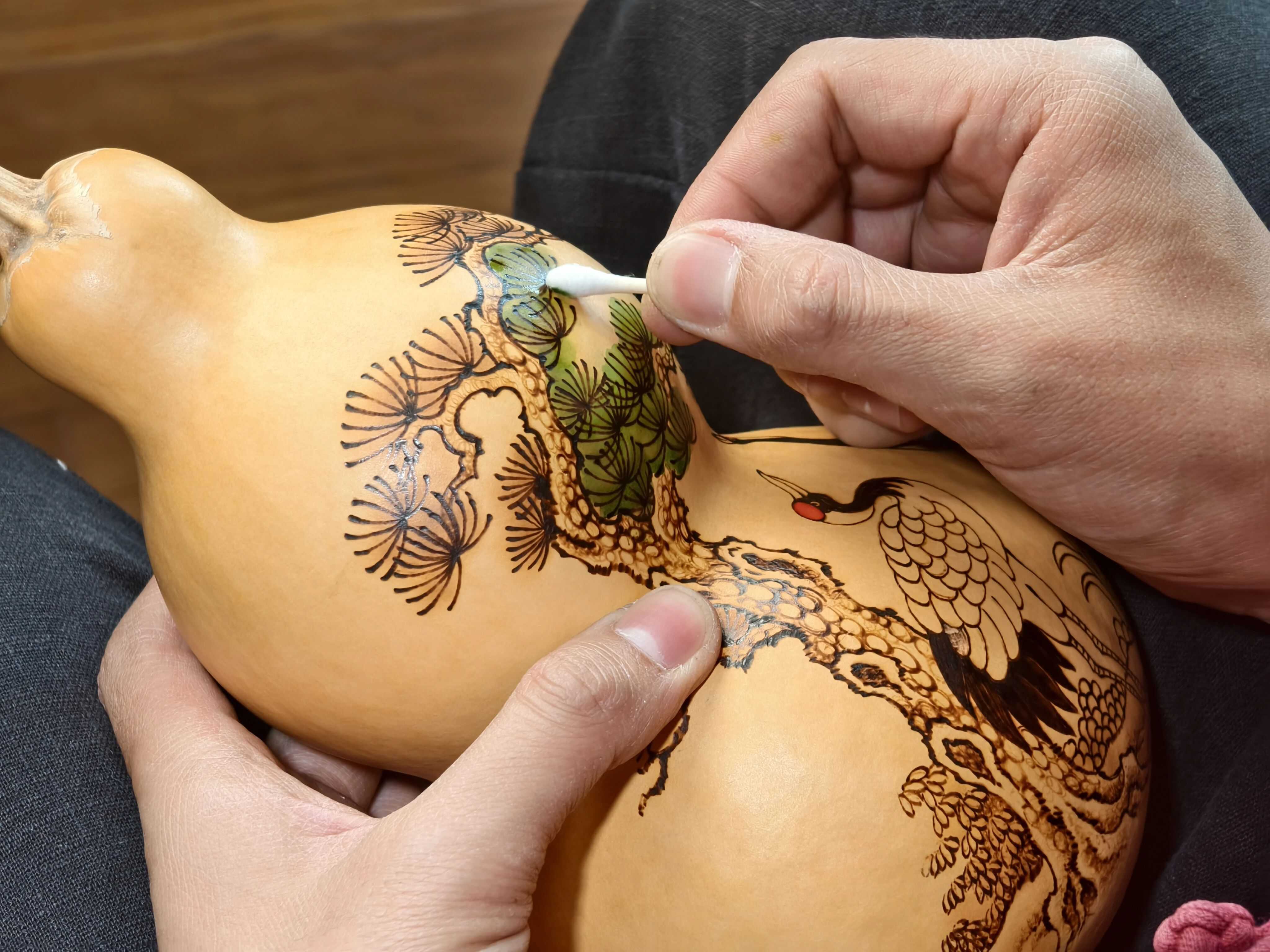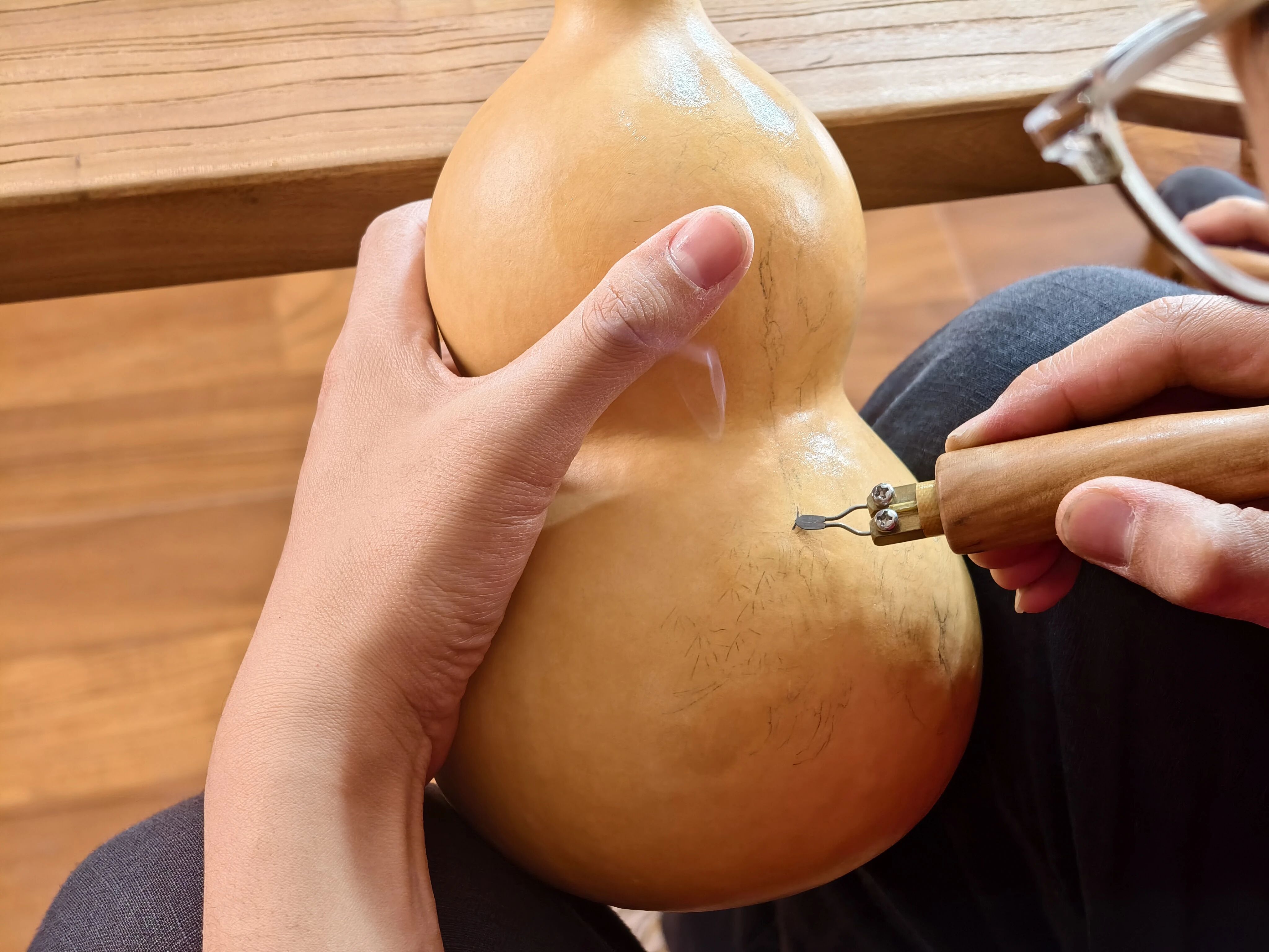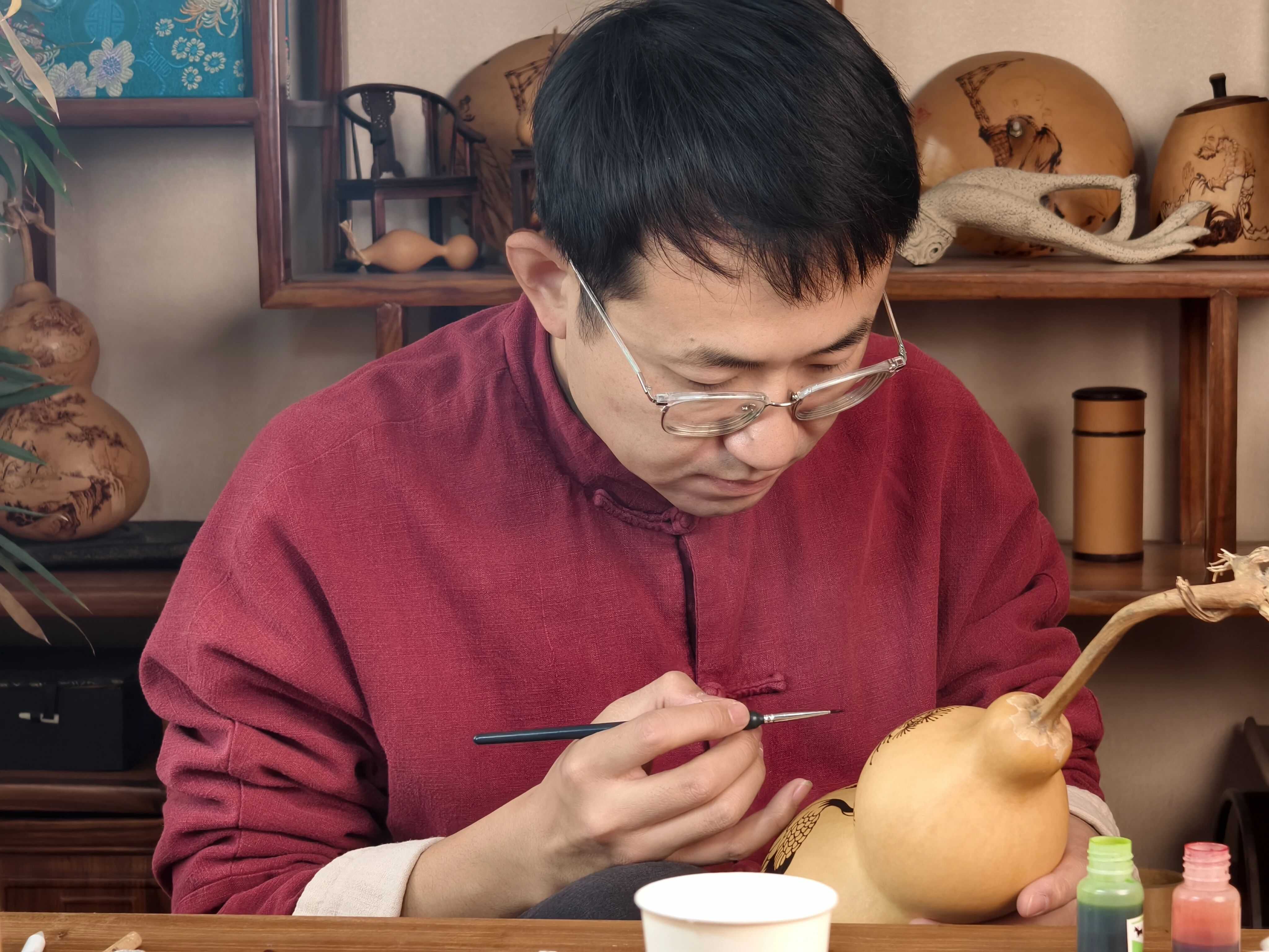 葫芦从藤上摘下,生命看似终结。但在赵潇璞手中,另一段生命才刚刚开始。