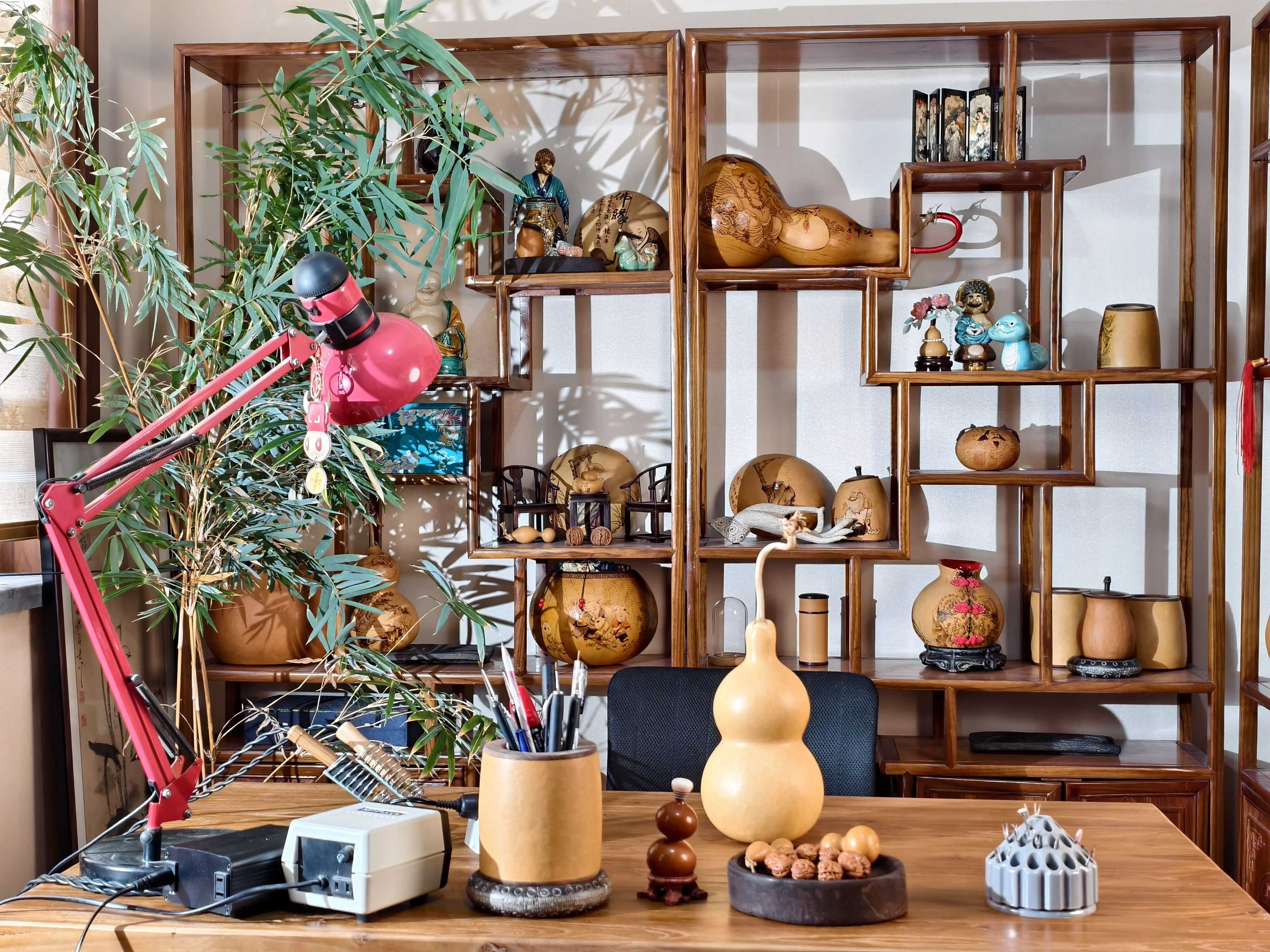 推开潇璞烙画工作室的门,满地大小不一的葫芦,像结满了岁月的果实,在晨光里泛着温润的光。这里便是葫芦烙画非遗传承人赵潇璞的世界——一个让时间慢下来,也让传统活下来的地方。