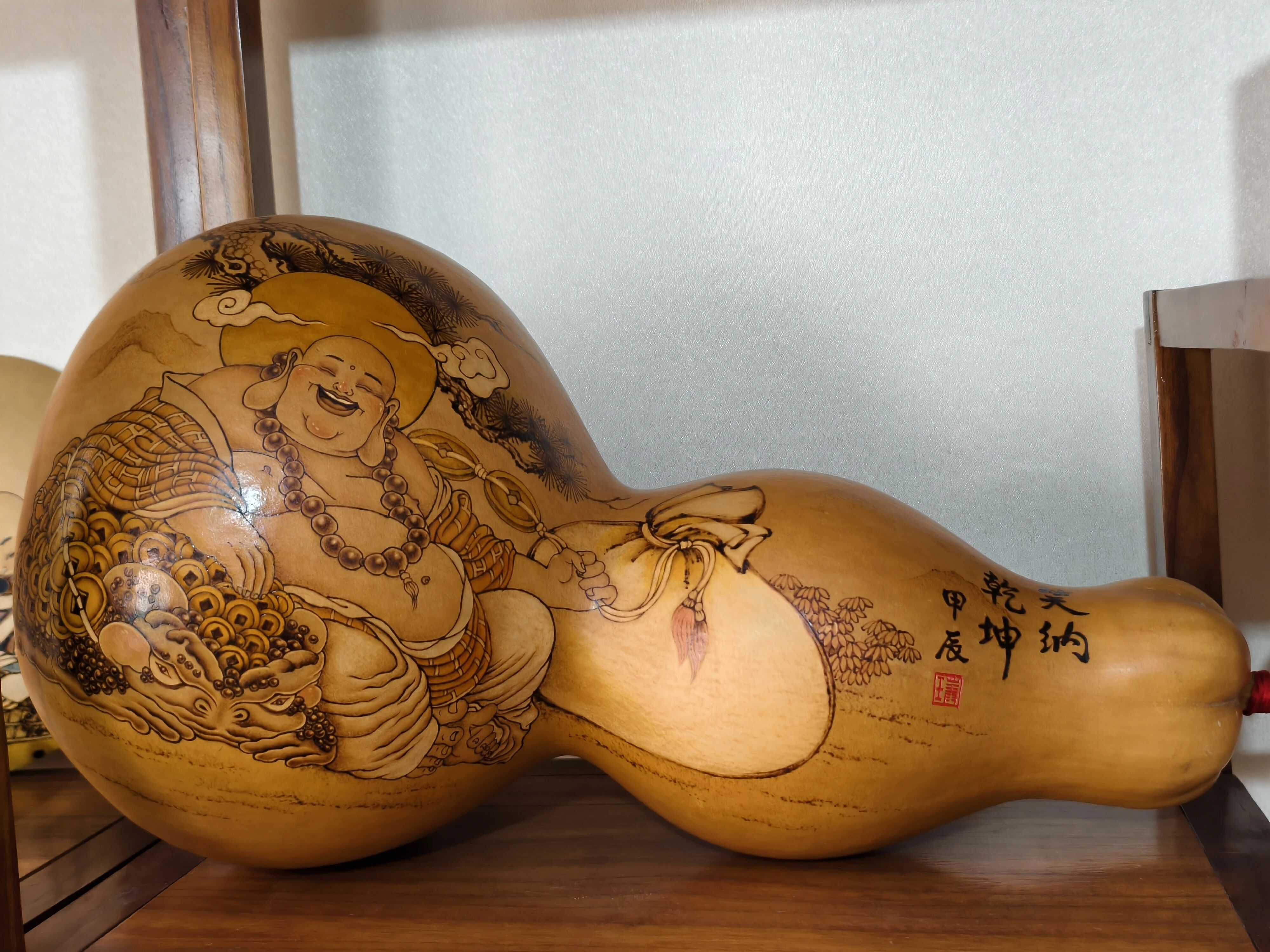 赵潇璞的笔下,流淌的是中国人血脉里代代相传的吉庆与夙愿。在他手中,葫芦的弧面成了演绎千年民间情怀的舞台。他的烙笔,仿佛更擅长描绘那些承载着富贵吉祥的图景,那些口耳相传的民间故事,都在他的烙笔下定格成永恒的诗篇。
