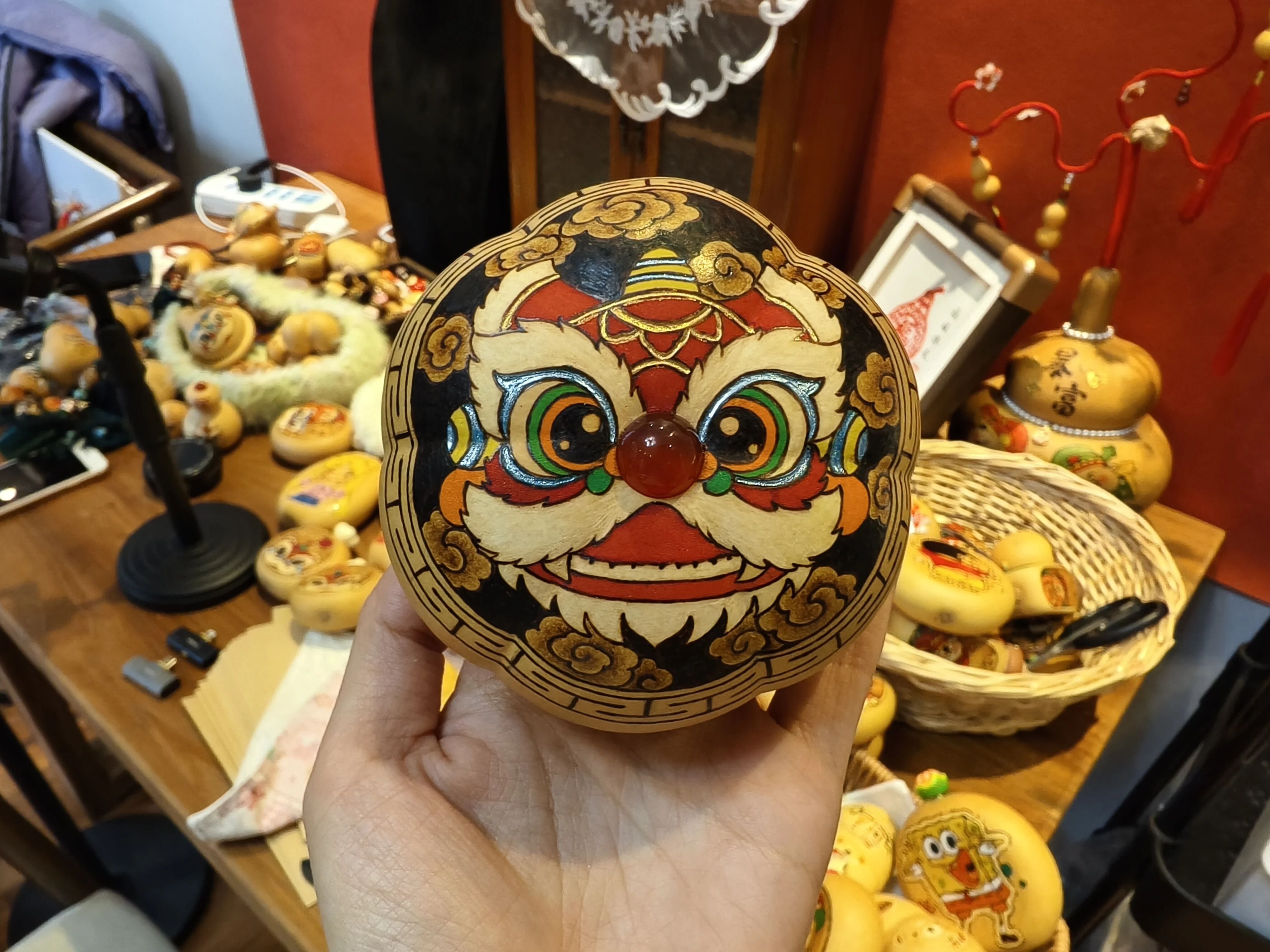 这些图案,并非简单的复制。每一笔烙痕,都融入了赵潇璞对美好生活的理解与祝愿。他将晋城百姓对生活的热爱、对平安的祈求、对丰收的盼望,都凝练在这方寸之间的火笔丹青之中。在他看来,葫芦本就是吉祥物,以烙画赋予其更丰富的祥瑞内涵,成为美好情感的载体,让温暖与美好在烙痕中重新呼吸。