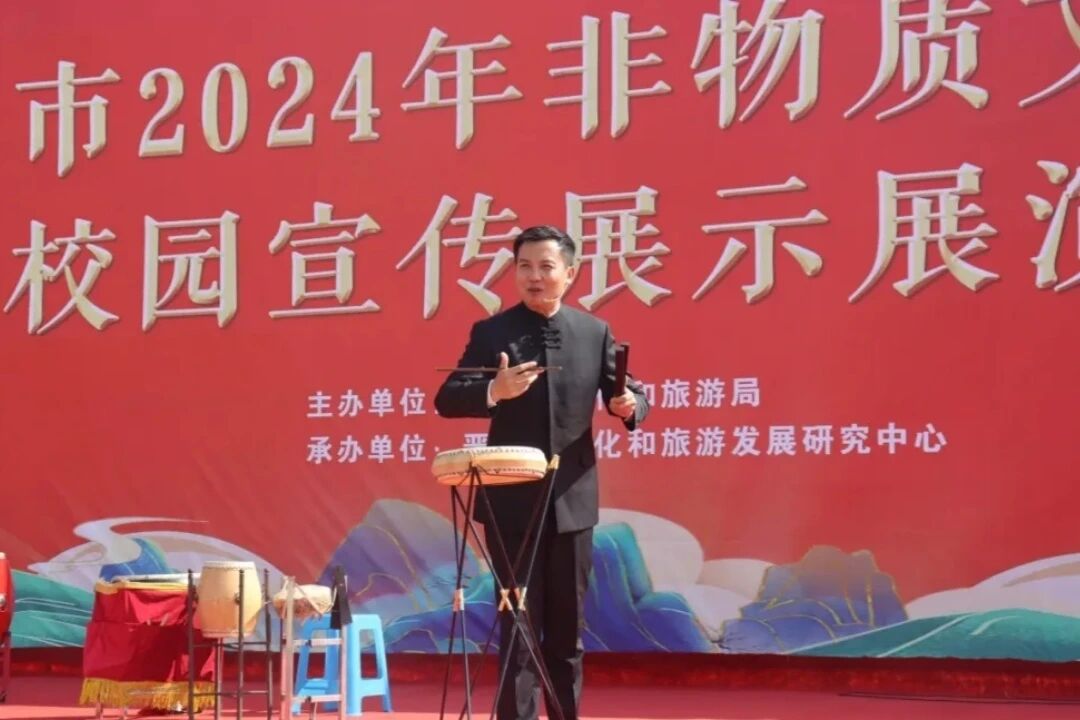 赵伟参加晋城市2024年非遗进校园展演,演出高平鼓书《小二黑结婚》。