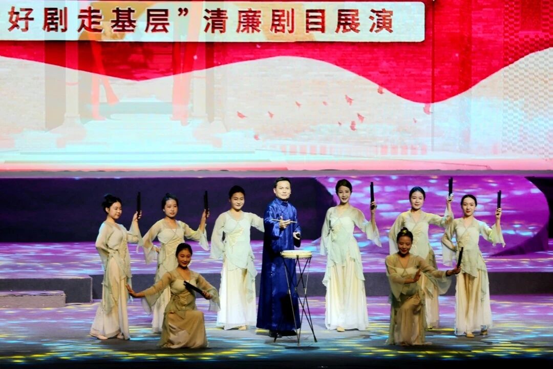 赵伟参加高平市清风廉韵润长平“好剧走基层”展演,表演高平鼓书《“八条训诫”永传唱》。