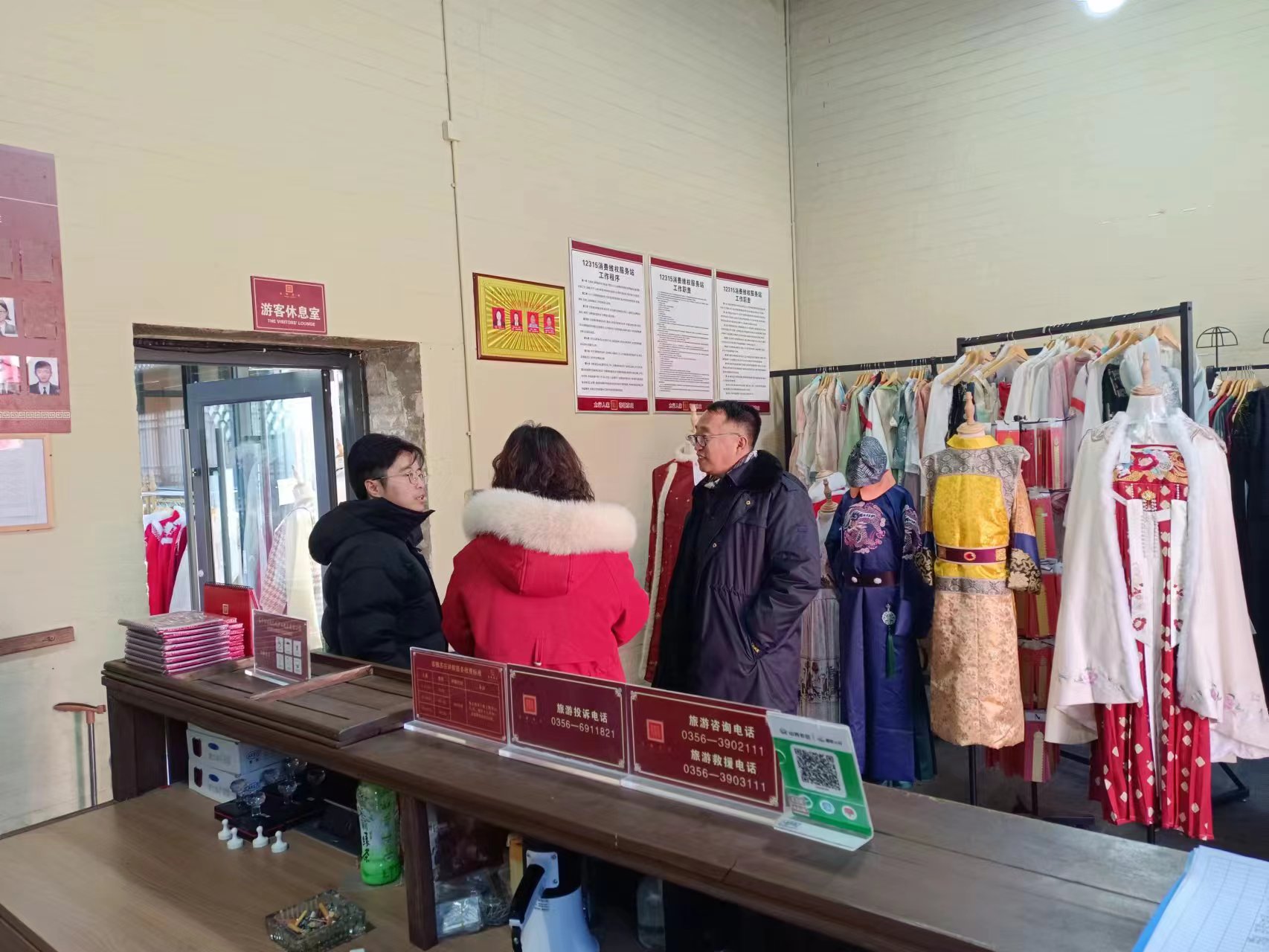 工作人员详细查看了景区是否公示有12315投诉举报电话,维权服务站标志牌是否在显著位置悬挂,是否有消费投诉登记表,有无受理和处理消费者投诉各种相关工作制度、流程等内容,并就部分景区内醒目位置缺少12315标识等问题提出了指导意见。