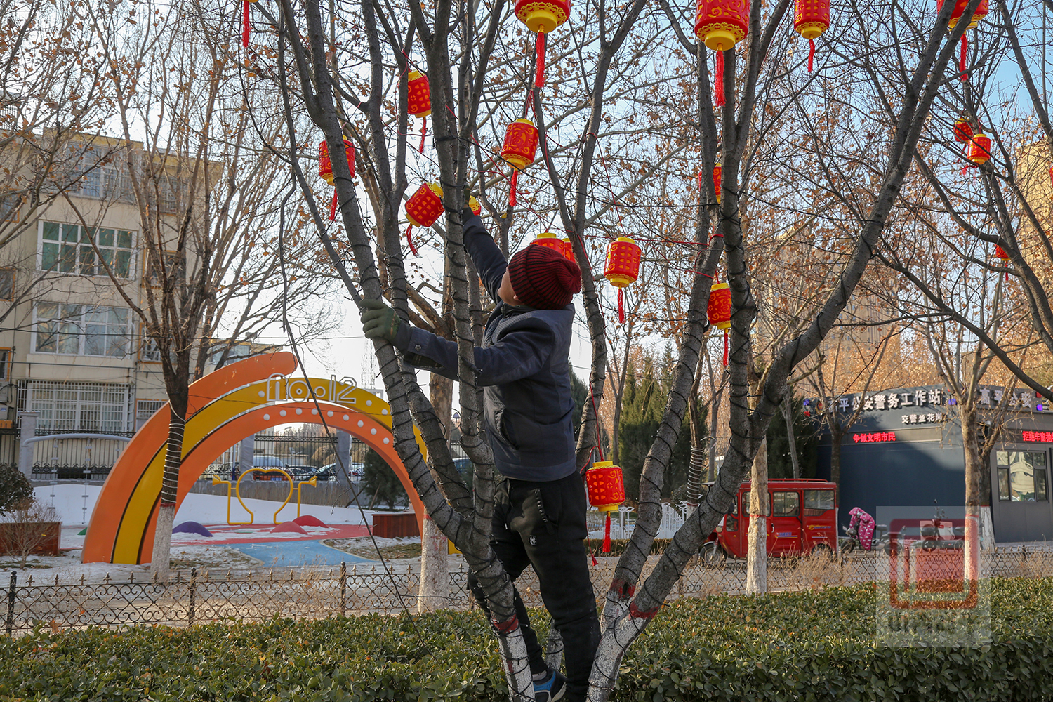 这些天,在炎帝大道、神农路、友谊街、康乐街等市区主要路段,随处可见工人师傅装扮景观树的忙碌身影,大家分工明确,接线、组装、挂灯……各项工序有条不紊。不远处,火红的灯笼、彩色的灯带、造型各异的彩灯错落有致地挂在树梢,龙腾虎跃、生肖贺岁等大型落地灯组摆放在街边,让冬日多了几分活力,也扮靓了城市街角,浓浓年味儿扑面而来。