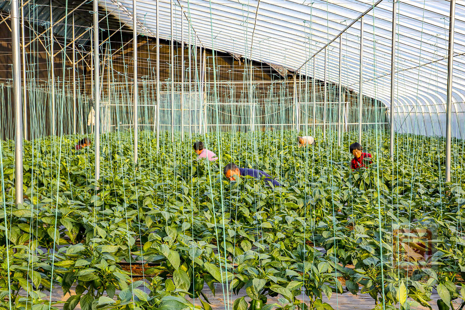 玺田农业现代化发展有限公司建有9栋温室大棚,5栋春秋大棚,规模化种植青椒、西葫芦、西红柿等绿色蔬菜,有效带动了10余名村民就业。目前,7栋青椒大棚已进入采收期,每栋大棚年产蔬菜约2万斤,人均年增收可达2万元,大棚蔬菜种植产业成为了村民们的致富产业。