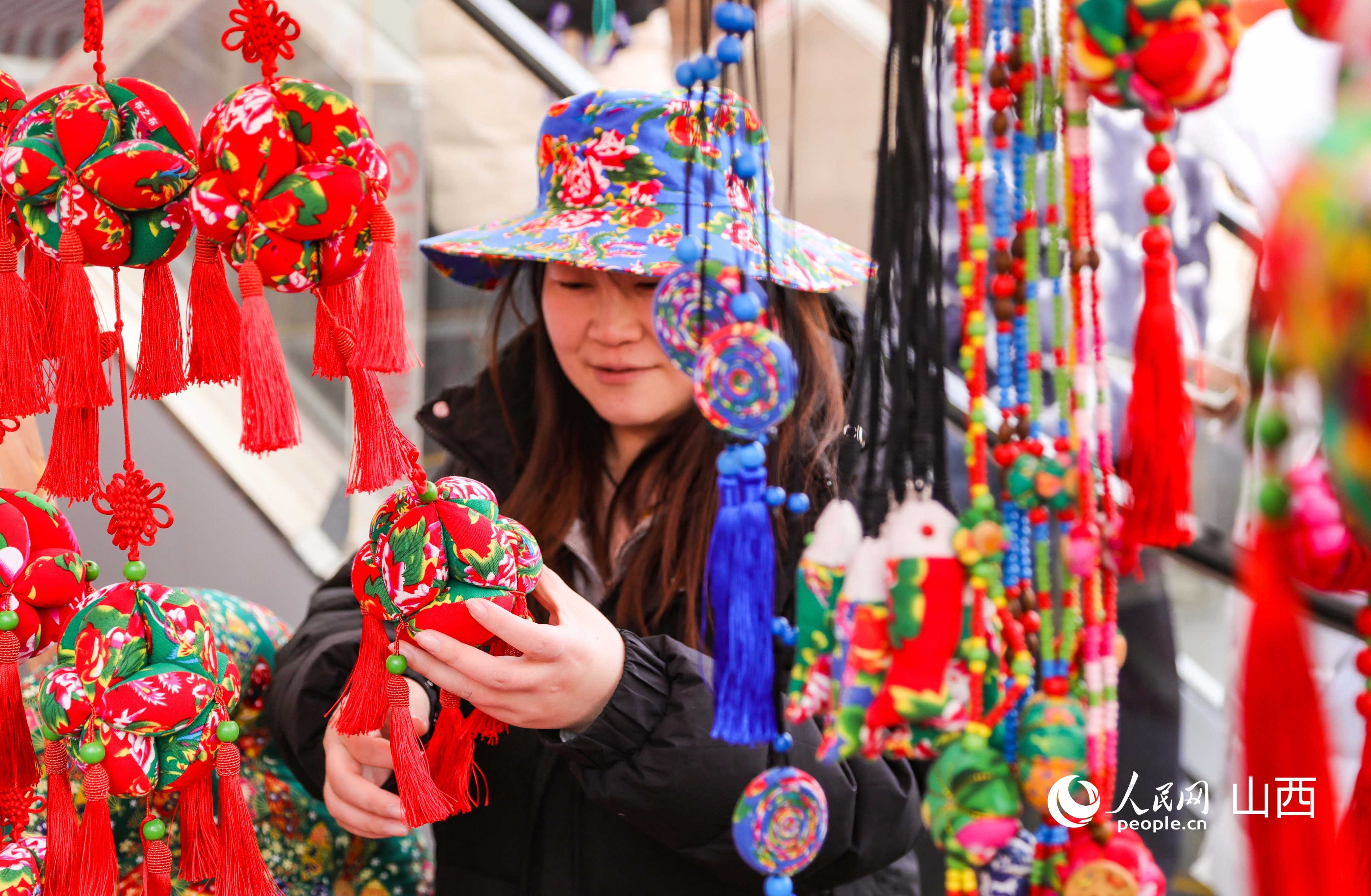 一位女士在挑选高平特色香包。人民网记者 王帆摄
