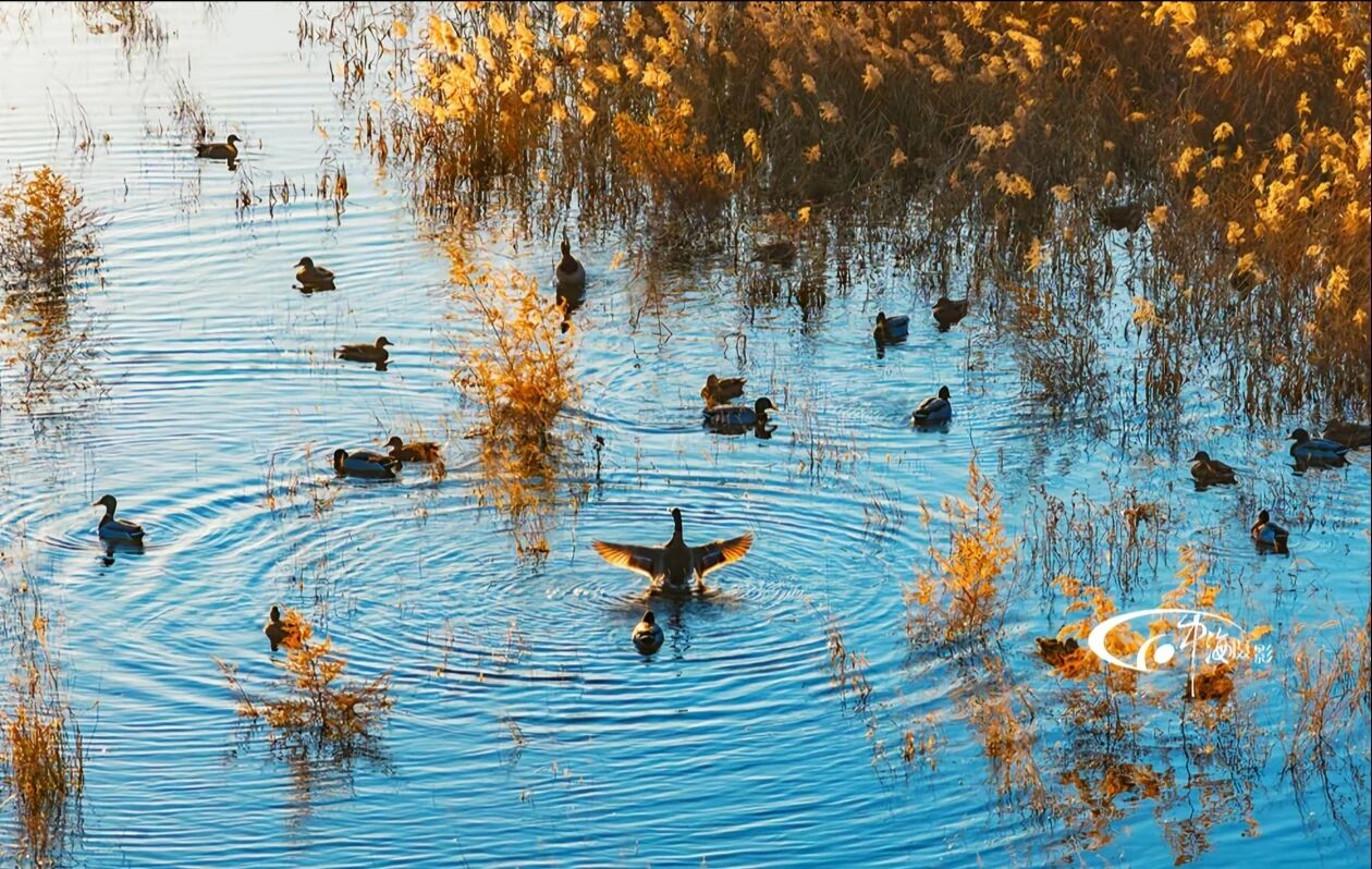 春夏季,这里是候鸟北归的“服务区”。放眼望去,杨、柳、松等树木郁郁葱葱,枝叶交织成一片生机盎然的林海,林下绿草如茵,宛如铺开的绒毯。澄澈的湖面倒映着蔚蓝的天空与岸边的浓绿,一座座沙洲如碧玉簪般伸入湖心,白天鹅、白鹭、苍鹭等鸟儿在沙洲旁悠然停歇、嬉戏,与岸绿洲影共同绘就“鸟戏春水”的灵动画卷。值得一提的是,这里还迎来了尊贵的“客人”——国家二级保护动物小天鹅,成为湿地生态改善的生动注脚。