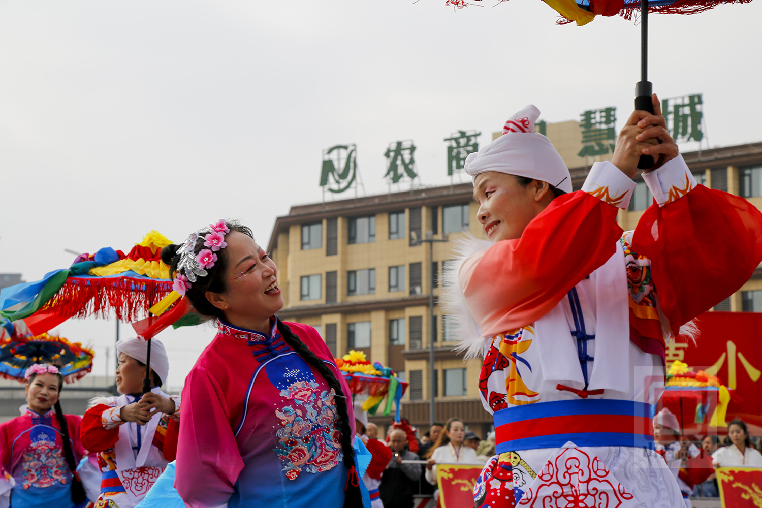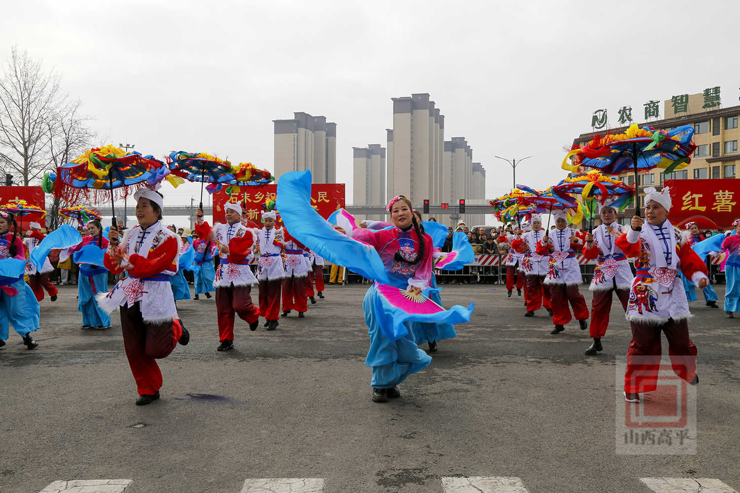 伴着耍乐故事的欢歌,代表科兴集团、国投集团、农投集团、文旅集团、恒通集团5家重点企业及15个乡镇(街道)的20辆彩车,从高平东站缓缓出发,沿炎帝大道向炎帝陵一路行进。道路两侧市民群众驻足观看,纷纷用手机、相机记录下这一年一度的热闹场景。