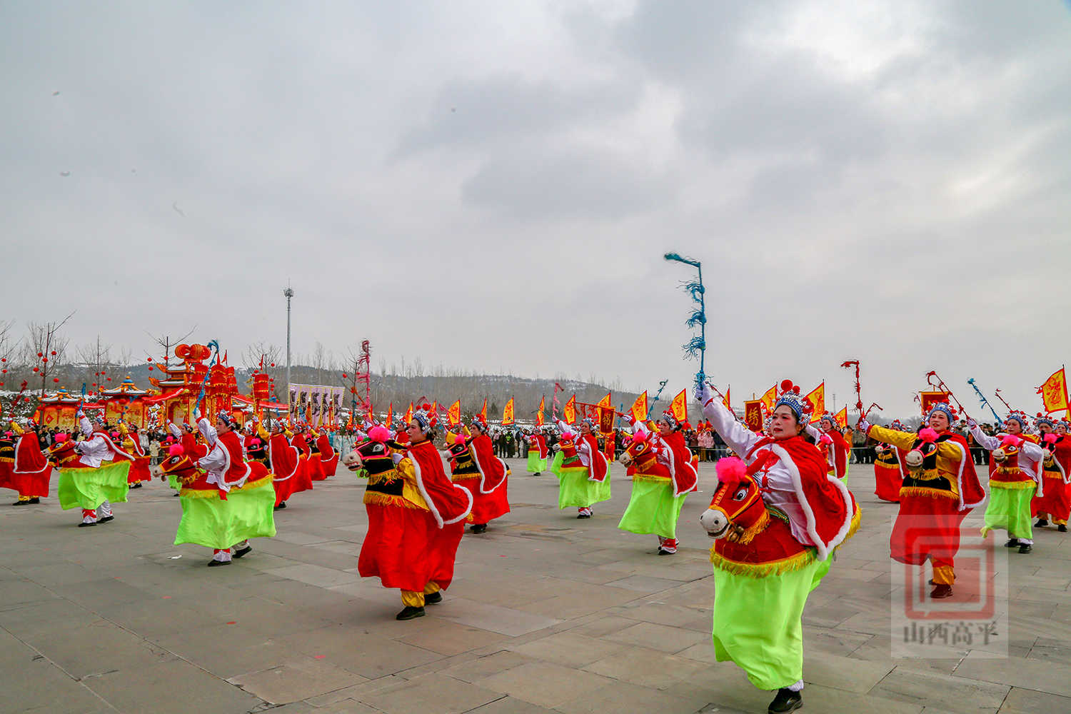 20辆彩车以中国红与金黄为主色调,巧妙融合了生肖骏马、炎帝文化、古建文旅、产业振兴、城乡发展等元素,造型精美、设计独特,全方位展现了高平厚重的文化底蕴、蓬勃的产业活力与日新月异的城市变化。