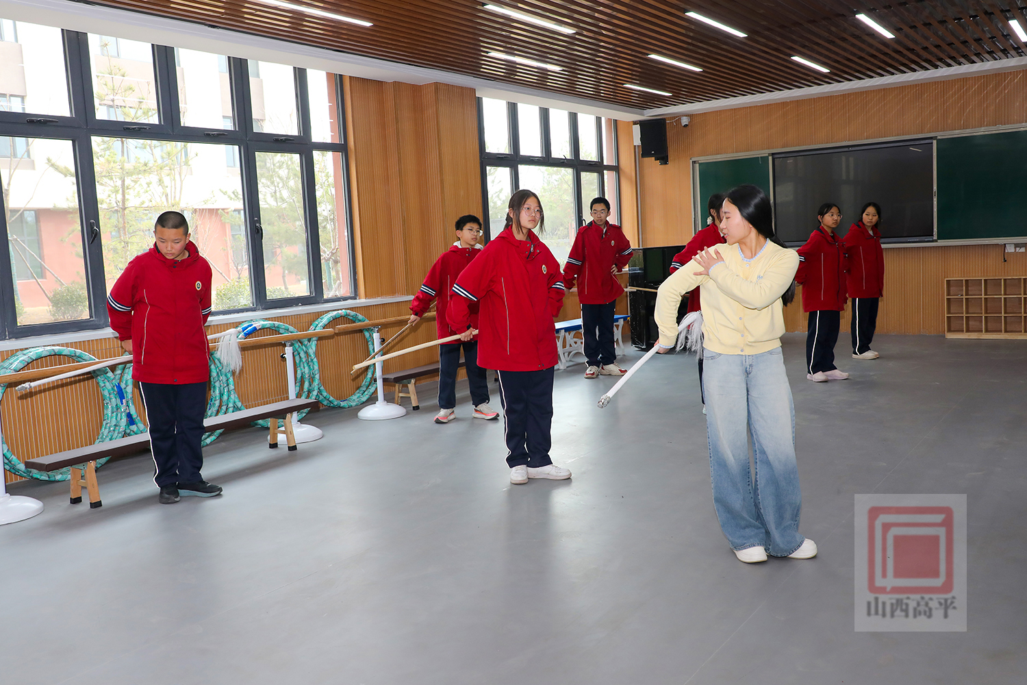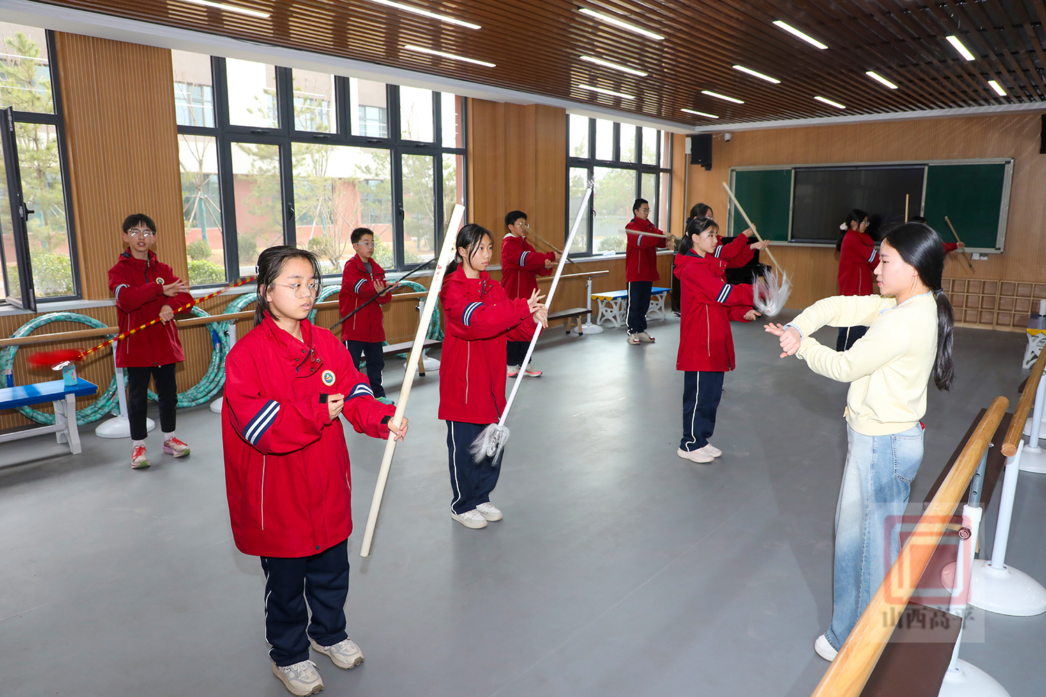 走进炎帝中学戏曲表演社团活动室,数杆银枪在学生们手中灵活转动、上下翻飞,一招一式有板有眼。在老师的悉心指导下,学生们全神贯注,灵活运用手腕力量,认真练习提枪花、劈喉花和后背花等把子功基础动作。从持枪姿势到发力要点,从动作规范到节奏把控,学生们逐渐掌握戏曲耍枪的表演要领。