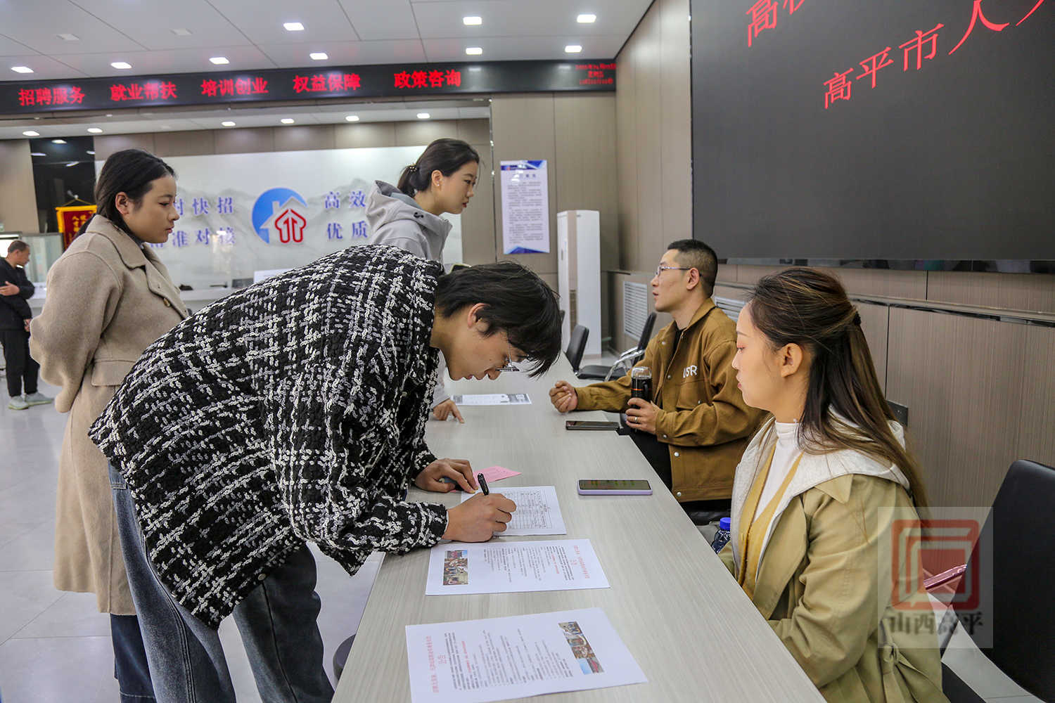 某保险公司团险部经理宋星说道:“我们这次主要招聘客户经理、政保服务专员等岗位人员,现场收到了几份意向人员简历,整体求职意愿和专业匹配度都比较高。”