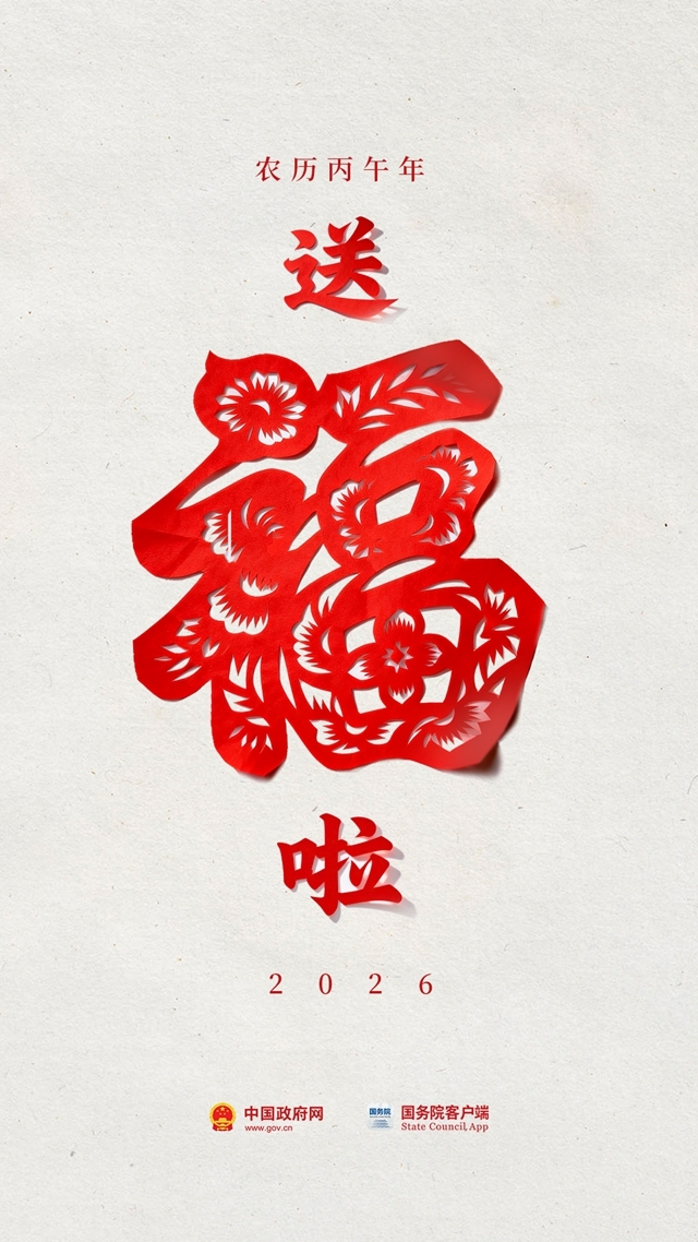 拜年啦! 来源:中国政府网 发布时间:2026-02-17 【字体:小 大】 如果内容不能正常显示,请更换浏览器进行重试 部分图片内容由AI辅助生成拜年啦送福啦祝大家新春快乐马年大吉! 本页二维码 【打印正文】