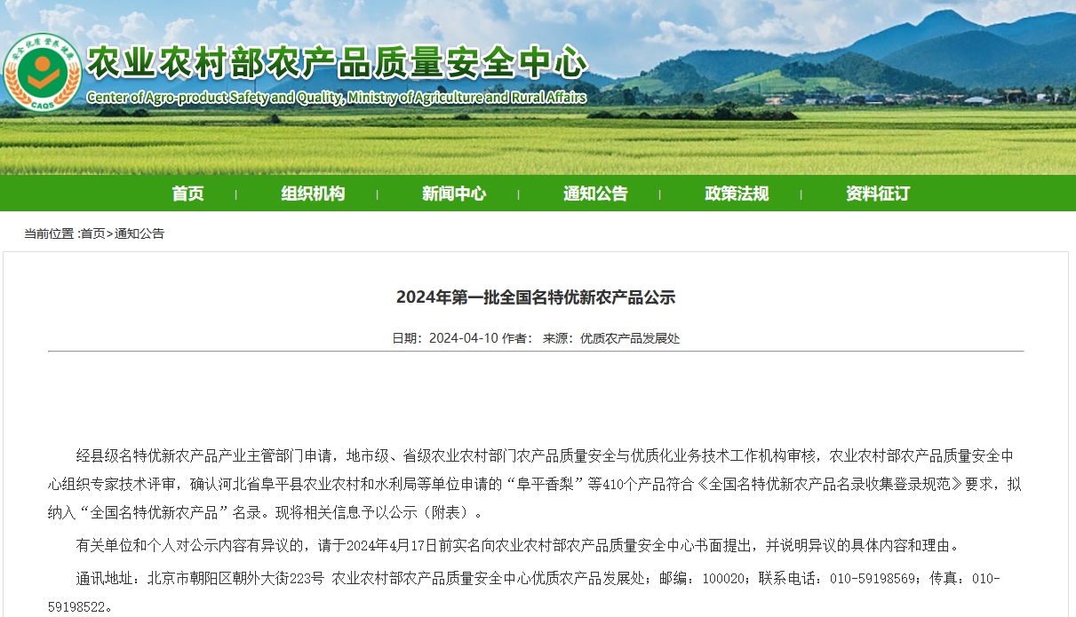 2024年第一批全国名特优新农产品公示 我市2种农产品上榜~