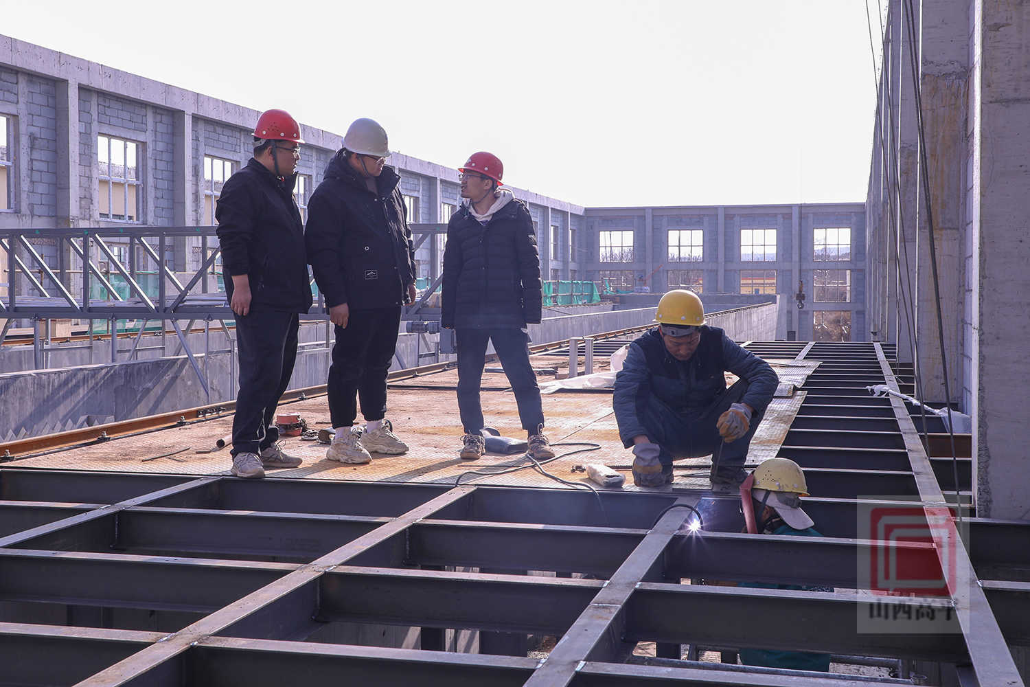来到城市第三水厂,只见新建的二期工程建筑整体已初见雏形,工人师傅们各司其职、干劲十足,加紧进行钢平台焊接、输水管道安装等作业,现场焊花四溅、热火朝天。