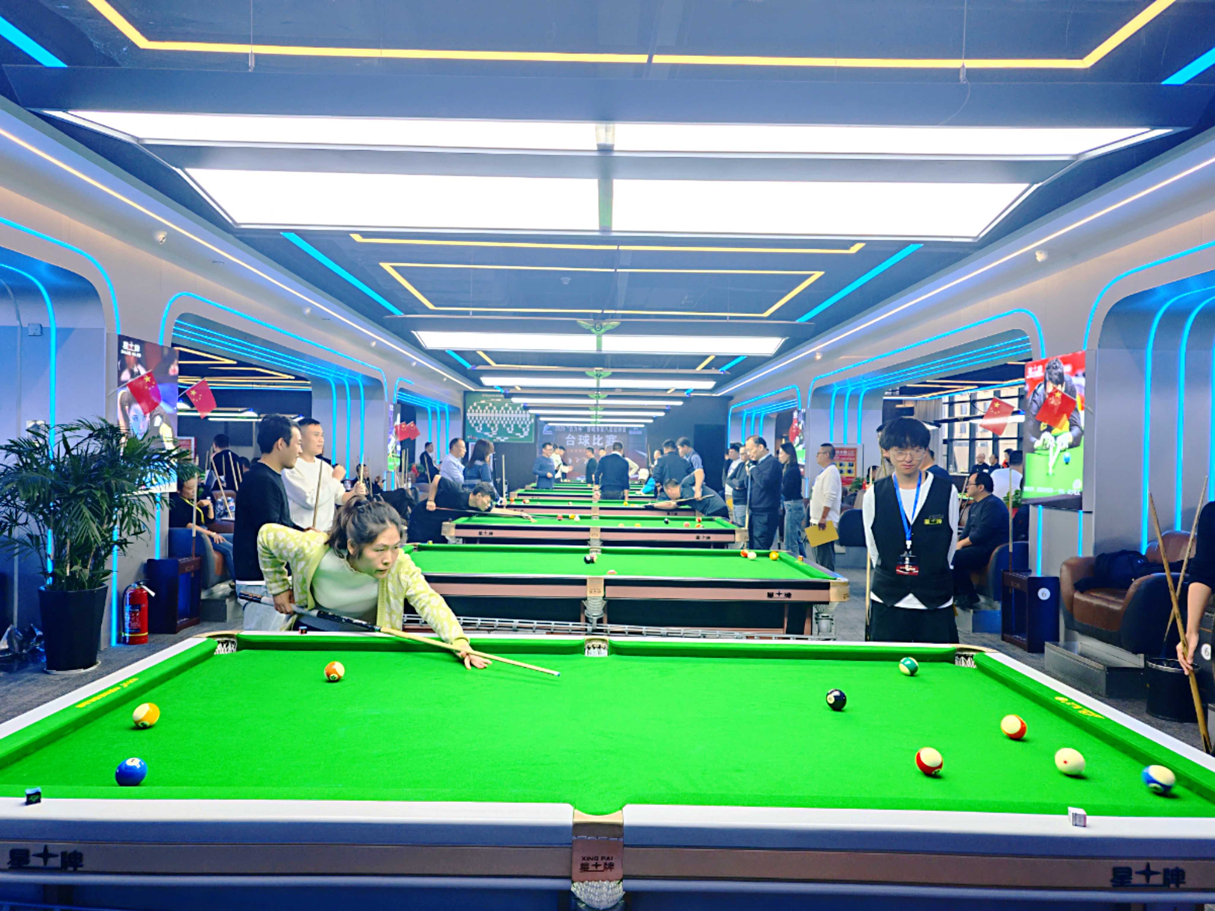 比赛设有中式台球个人赛和中式台球团体赛两大项目。赛场上,选手们手持球杆,神情专注,俯身调整角度后,利落出杆,现场精彩瞬间接连上演。