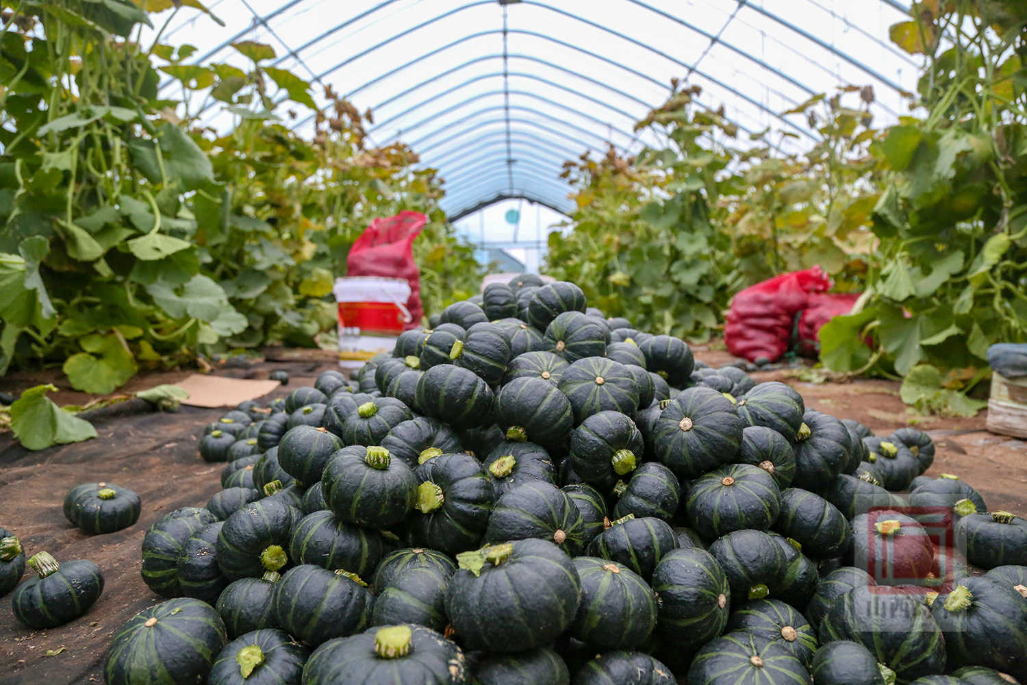 市炎谷丰供销联合发展有限公司设施农业负责人丁浩介绍:“6月底首茬贝贝南瓜上市后,市场反响不错。我们于8月份又种植了第二茬。目前,第二茬的18栋春秋棚进入采收期,预计可采摘8万斤。11月底其他温室大棚的贝贝南瓜也将陆续成熟。一年二茬种植可产贝贝南瓜50多万斤。”