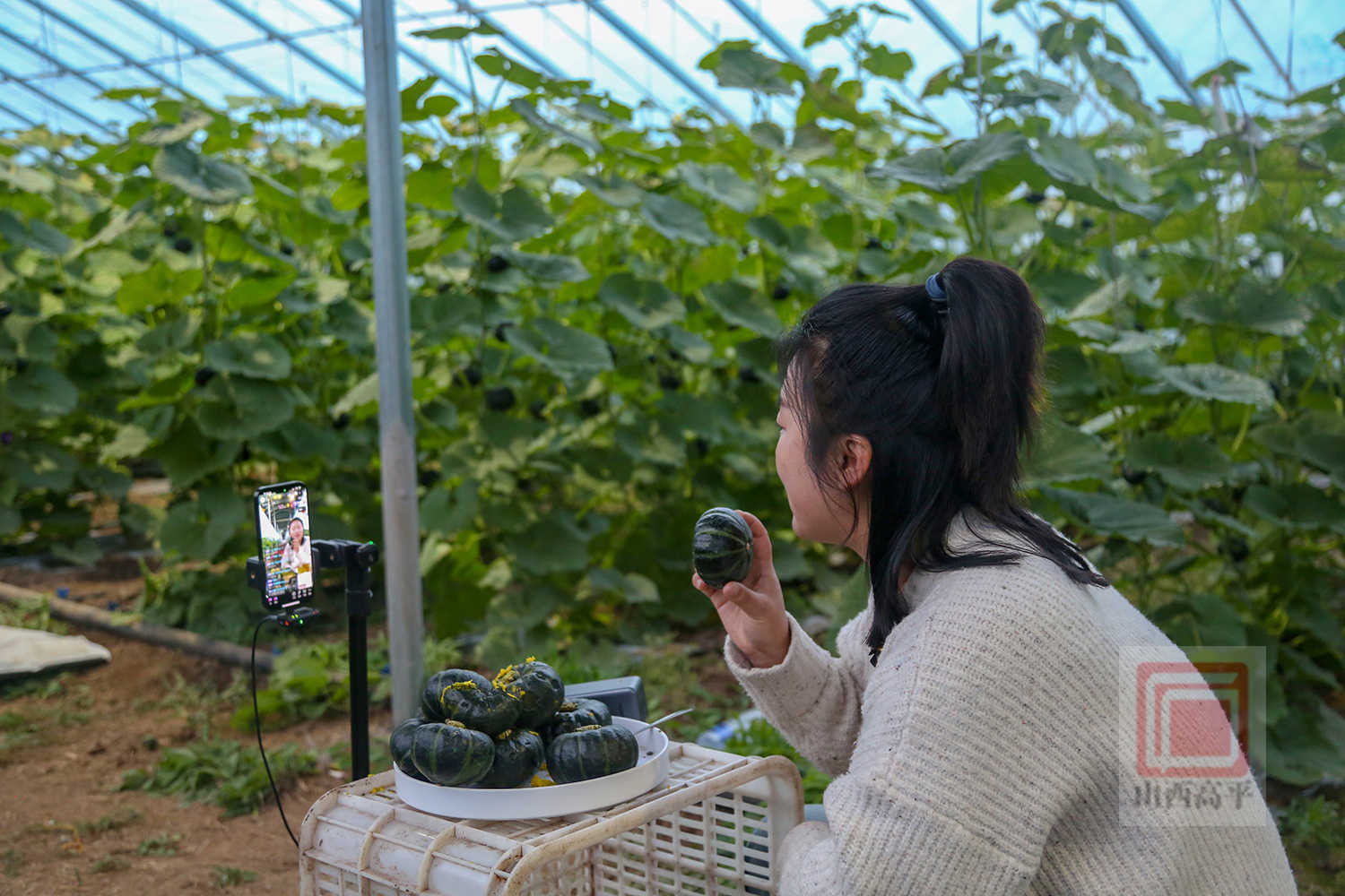 走进伯方村,一栋栋大棚整齐排列。棚内绿意盎然,刚摘下的贝贝南瓜色泽鲜亮、个头匀称。线上直播带货正火热进行,“我们的贝贝南瓜软糯香甜,富含多种维生素和矿物质,营养又好吃!”镜头前,主播热情地介绍着贝贝南瓜的品质优势和优惠活动。与此同时,收购商的货车早已等候在外,村民们将分拣打包好的贝贝南瓜一筐筐搬上车。