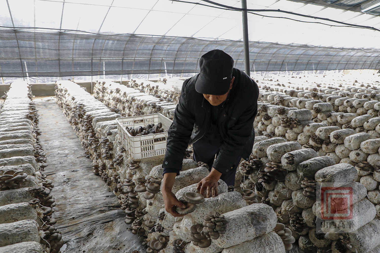 大棚负责人郭志荣介绍说:“11月份平菇迎来采收期,现在每天都有不少订单,我们得抓紧时间采摘,保证新鲜度。整个采摘期可持续到明年5月份,年产平菇可达30多万斤,收益在50万元左右。”
