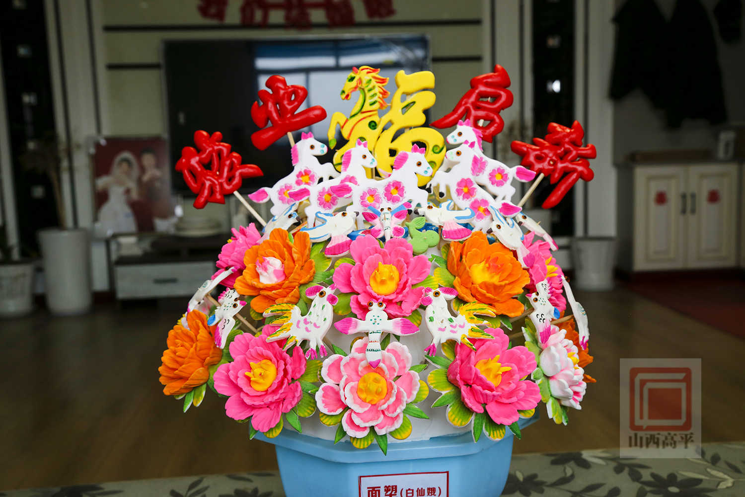 面塑在高平有着深厚的民俗文化底蕴,逢年过节蒸花馍,既承载着五谷丰登、平安顺遂的祈愿,也是非遗技艺的鲜活载体。为了让老手艺“活”起来,白仙娥在传承高平传统花馍制作技艺的基础上,还将传统文化元素和现代元素相融合,使高平面塑更加符合现代人的审美需求。