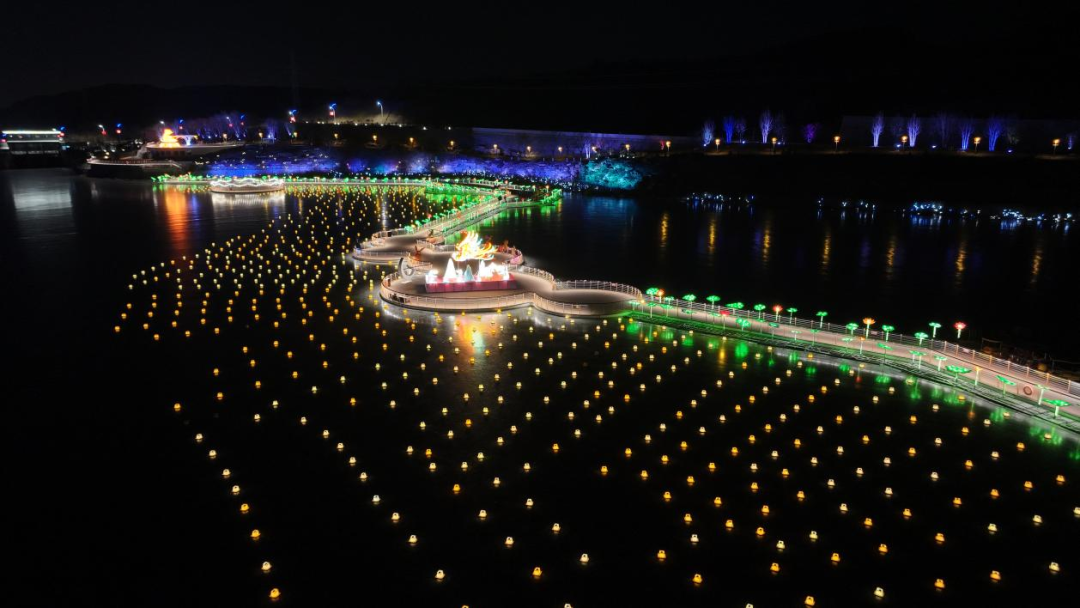 2025年第三届炎帝灯会釜山景区湖边灯组全景图