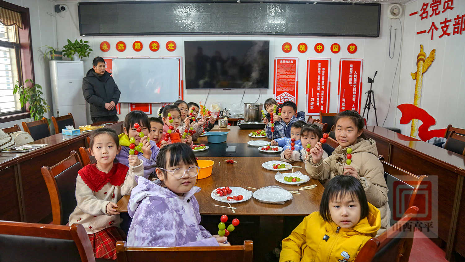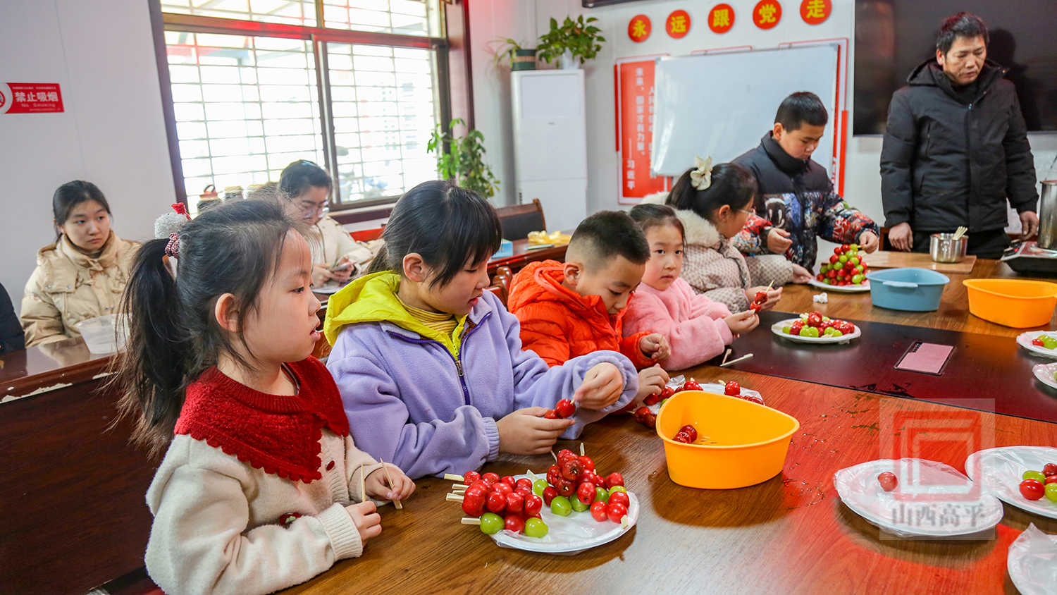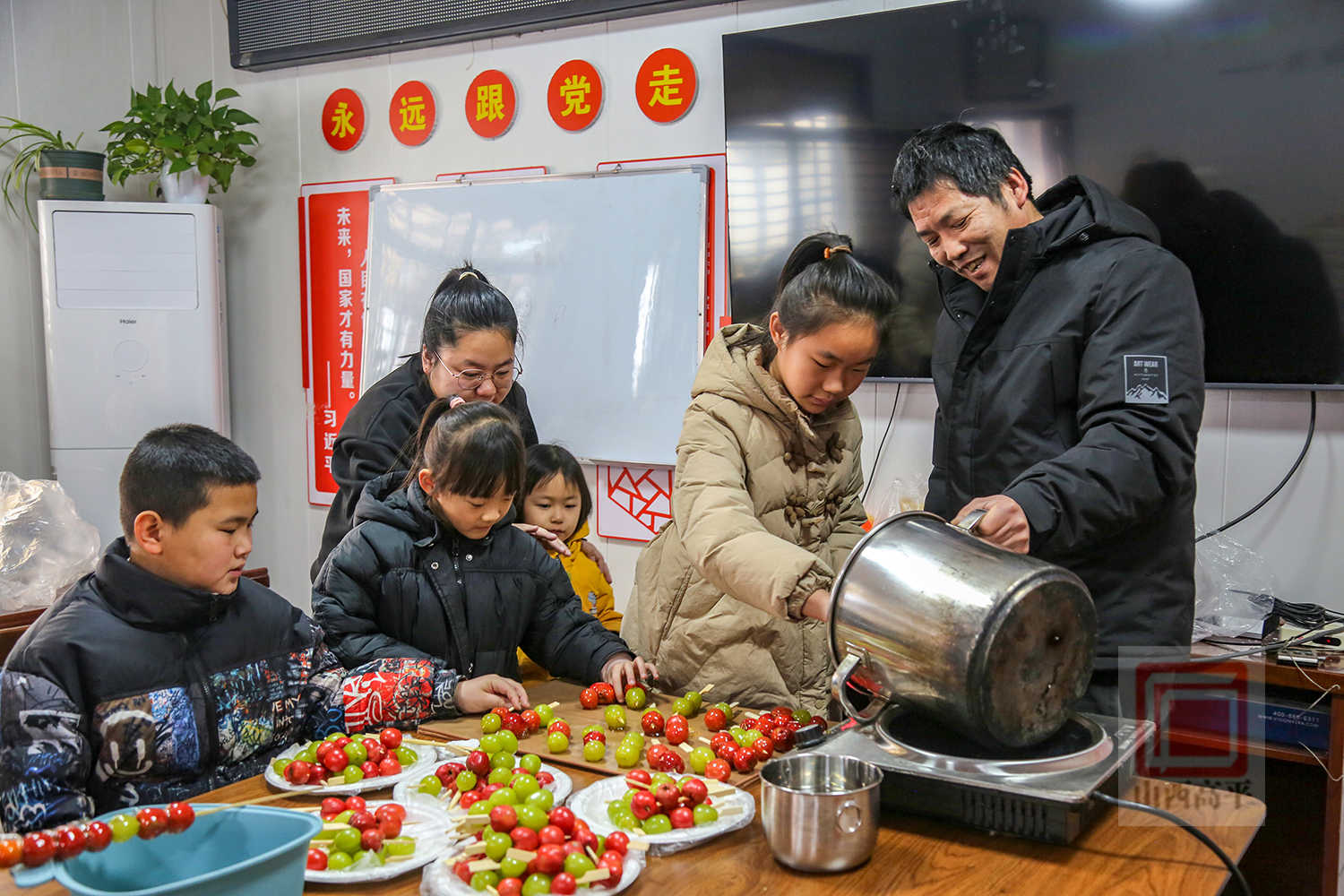 “我串了圣女果和山楂的糖葫芦,裹上糖之后亮晶晶的,特别好看,吃起来酸酸甜甜,美味极了。”小朋友秦悦童高兴地说。