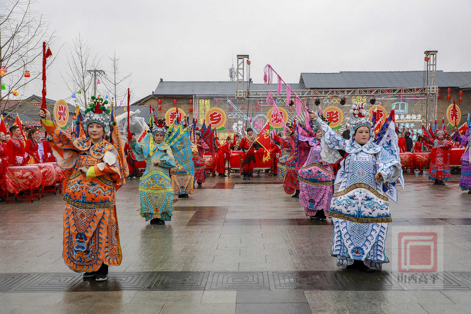 耍乐故事演出在气势雄浑的鼓舞中落下帷幕。伴着《赛马》曲目激昂的旋律,演员们手持鼓槌,在鼓面敲出欢腾的鼓点,传递出喜闹元宵的欢乐氛围。整场演出紧扣生肖马年俗文化、梨乡寺庄、梨园戏曲等元素进行创新编排,将上党梆子戏曲与传统民俗故事相结合,年味十足、热闹欢腾,为观众奉上了一场精彩纷呈的民俗表演。