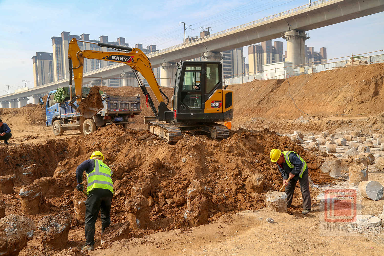 建设单位现场负责人寇元嘉介绍说:“二期项目自2月份复工以来,我们严格按照既定目标,稳步推进各项工作。桩间土清理作业预计在4月下旬可完成。接下来,将组织验收基槽,做静载试验。随后,将进行灰土垫层、回填等基础施工作业。整个二期项目预计2027年年底完工。”
