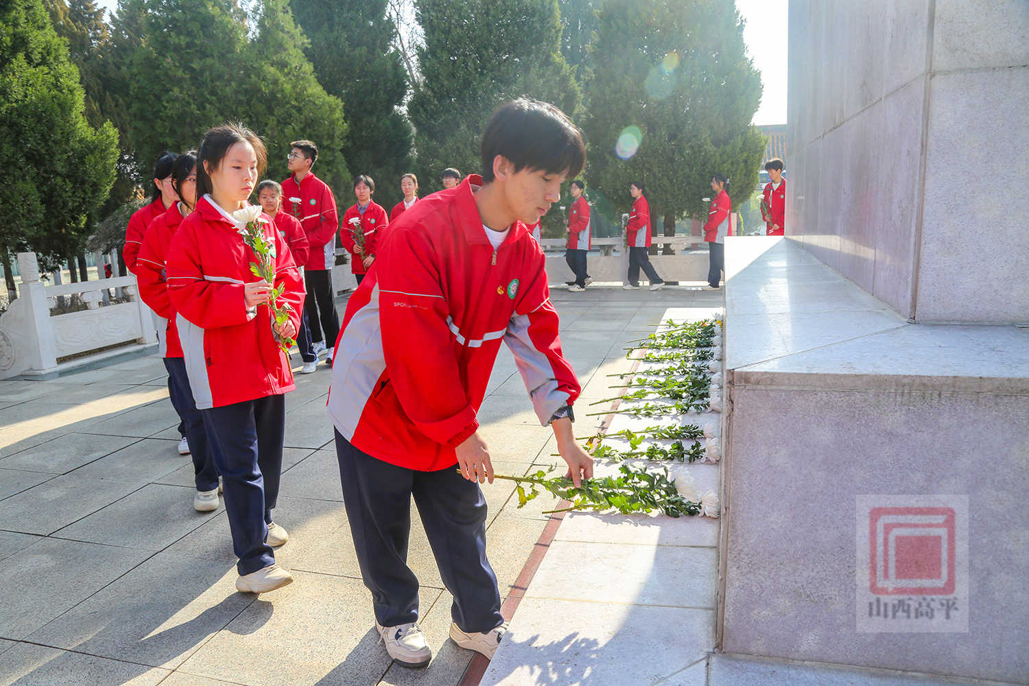 走进烈士陵园,松柏苍翠,丰碑矗立。在革命烈士纪念碑前,来自高平一中实验校的部分师生整齐列队,奏唱国歌、肃立默哀,缅怀革命先烈的丰功伟绩,寄托对英烈的深切哀思。默哀毕,师生们缓步上前,向革命烈士纪念碑敬献花篮与鲜花,以朴素庄重的方式,表达对革命先烈的追思与敬意。