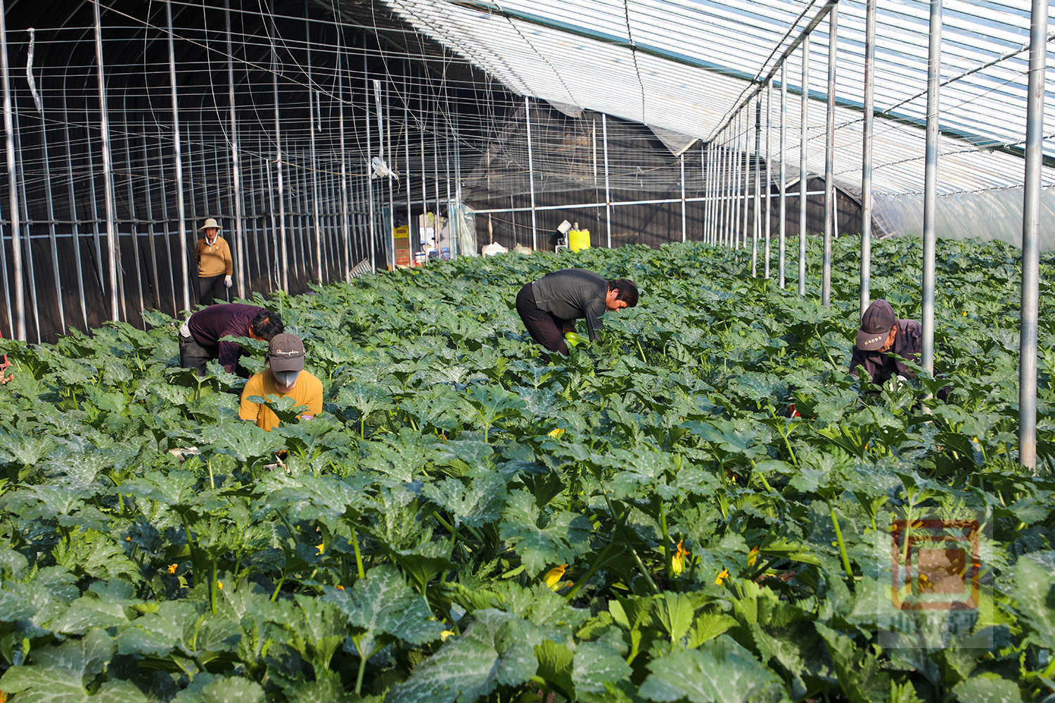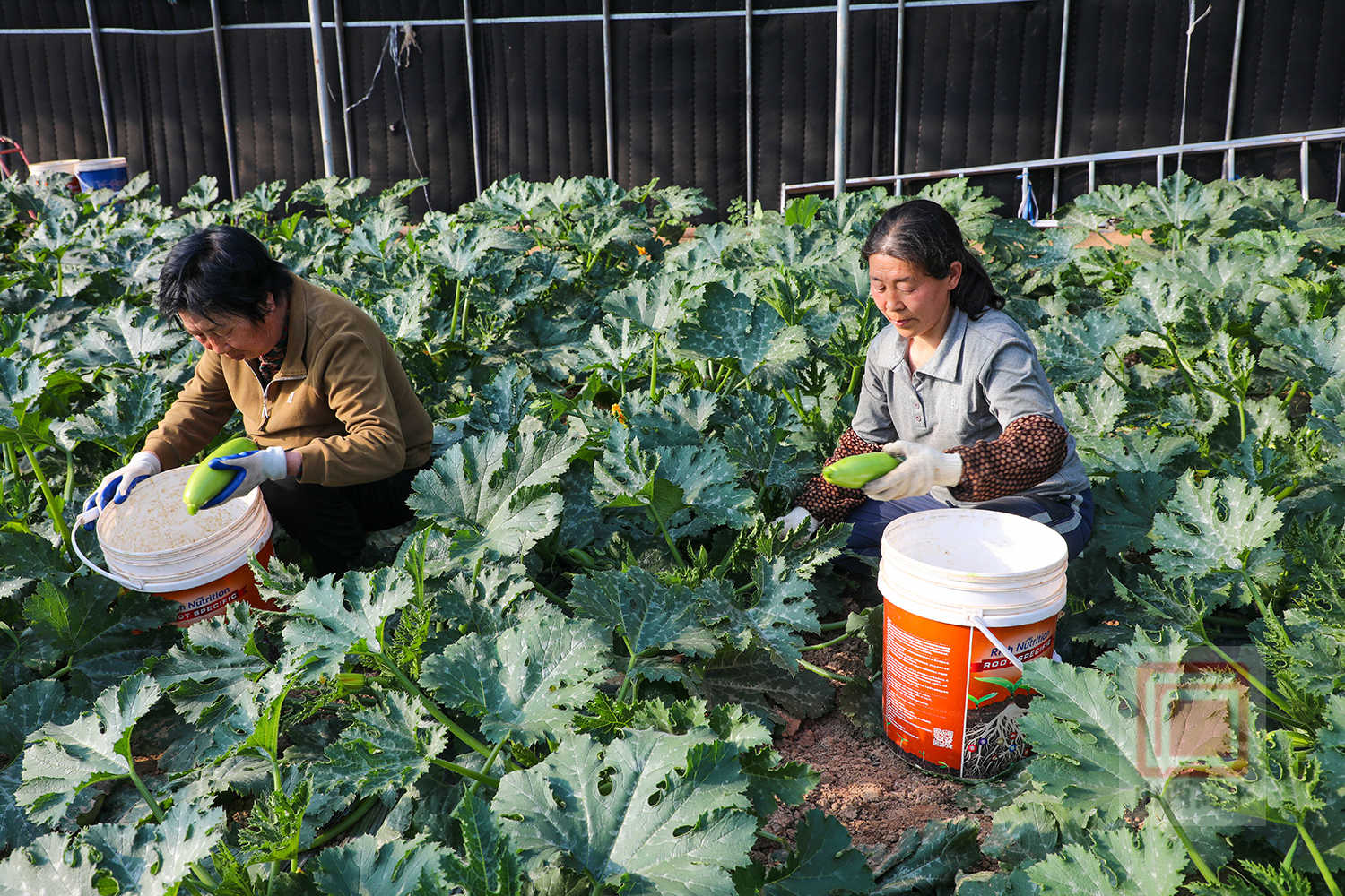走进温室大棚,满目新绿、春意盎然,一个个饱满鲜亮、个头匀实的西葫芦长势喜人。村民们穿梭其间,麻利地采摘、装筐,随即运往周边市场。