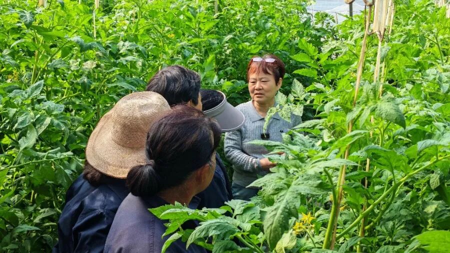 在蔬菜种植大棚,王卫萍老师围绕西红柿、西葫芦、黄瓜等蔬菜的高产种植技术,聚焦春季育苗、移栽定植、温湿度调控、病虫害绿色防控等核心环节,用通俗易懂的“土话”,把晦涩的专业术语转化为朗朗上口的实用技巧,结合田间蔬菜生长实景,蹲在垄边手把手示范起垄覆膜、整枝打杈、药剂配比等实操动作,针对菜农提出的“苗期烂苗”“坐果率低”“土壤板结”等常见难题,逐一“把脉问诊、开方解惑”,现场演示生物防治、精准施肥等科学方法,让菜农能够听得懂、学得会、用得上。