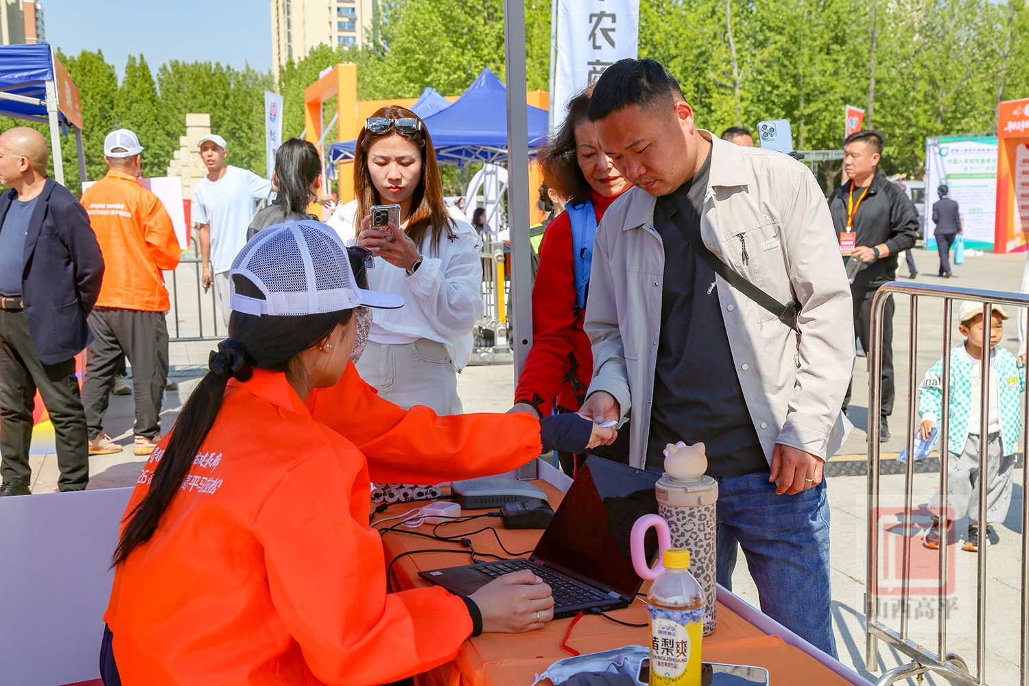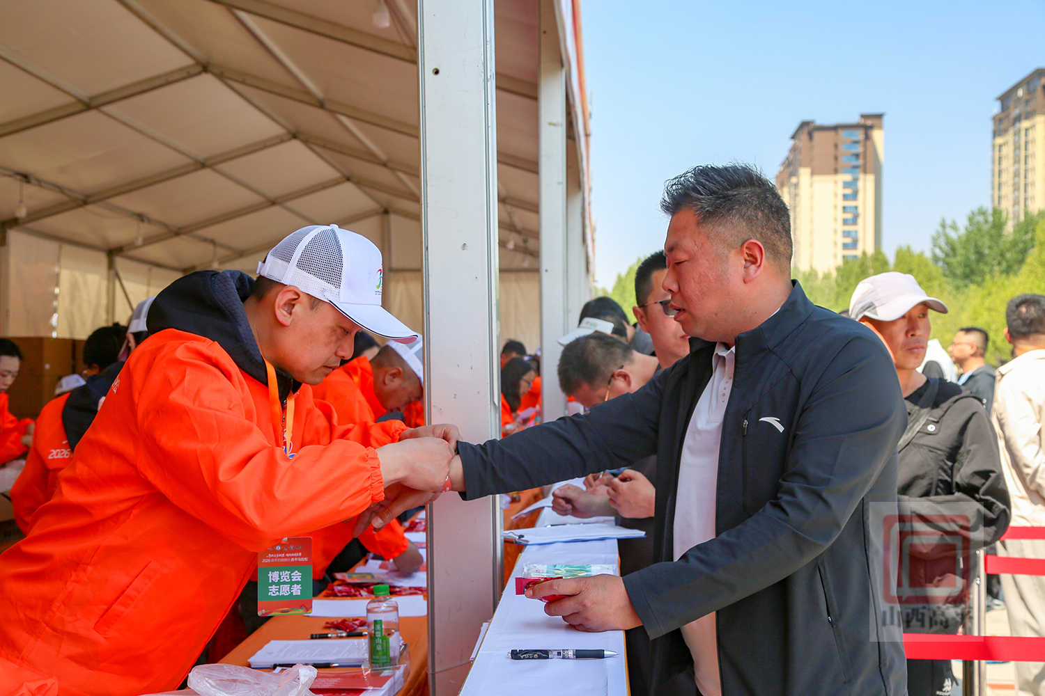 2026高平马拉松将于5月2日燃情开跑,4月30日上午,参赛选手们来到炎帝文化苑,有序领取参赛物资。