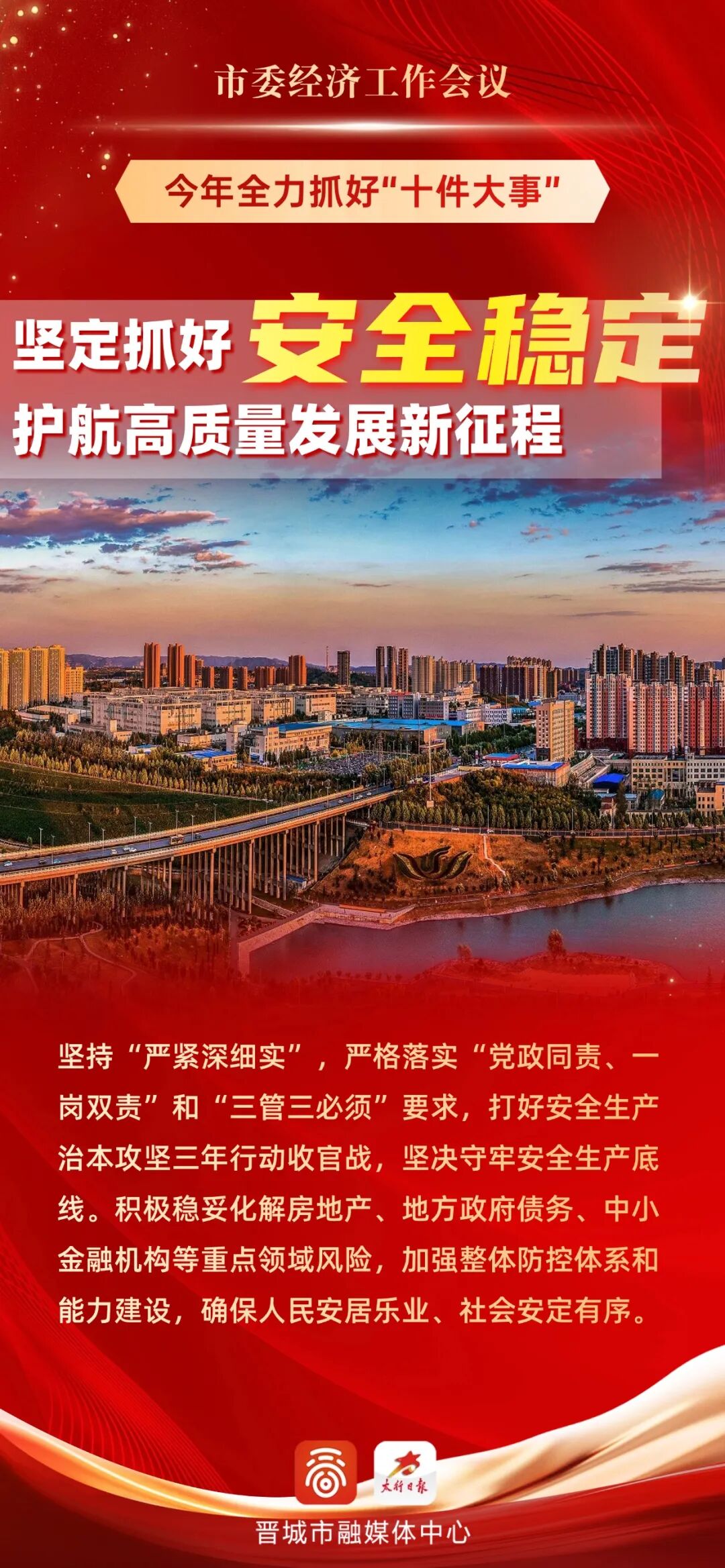 全力抓好十件大事!“十五五”强势开局! 来源:晋城市人民政府网 发布时间:2026-01-09 【字体:小 大】 如果内容不能正常显示,请更换浏览器进行重试 1月7日市委经济工作会议召开会议指出要持续聚焦“六大战略定位”保持工作连续性强化举措针对性调动各方积极性全力抓好十件大事坚定信心、乘势而上求真务实、真抓实干推动“十五五”强势开局奋力谱写中国式现代化晋城篇章 本页二维码 【打印正文】