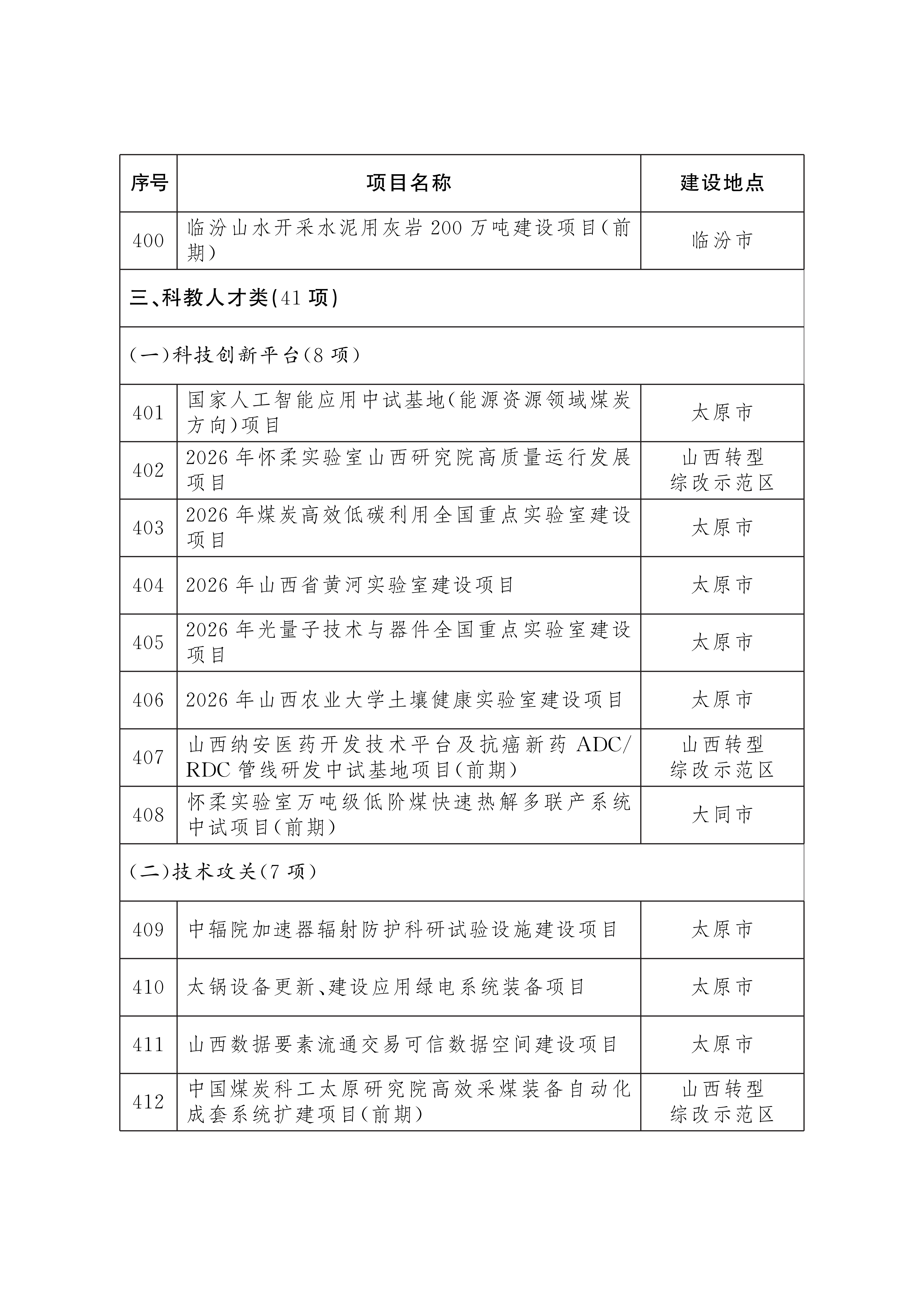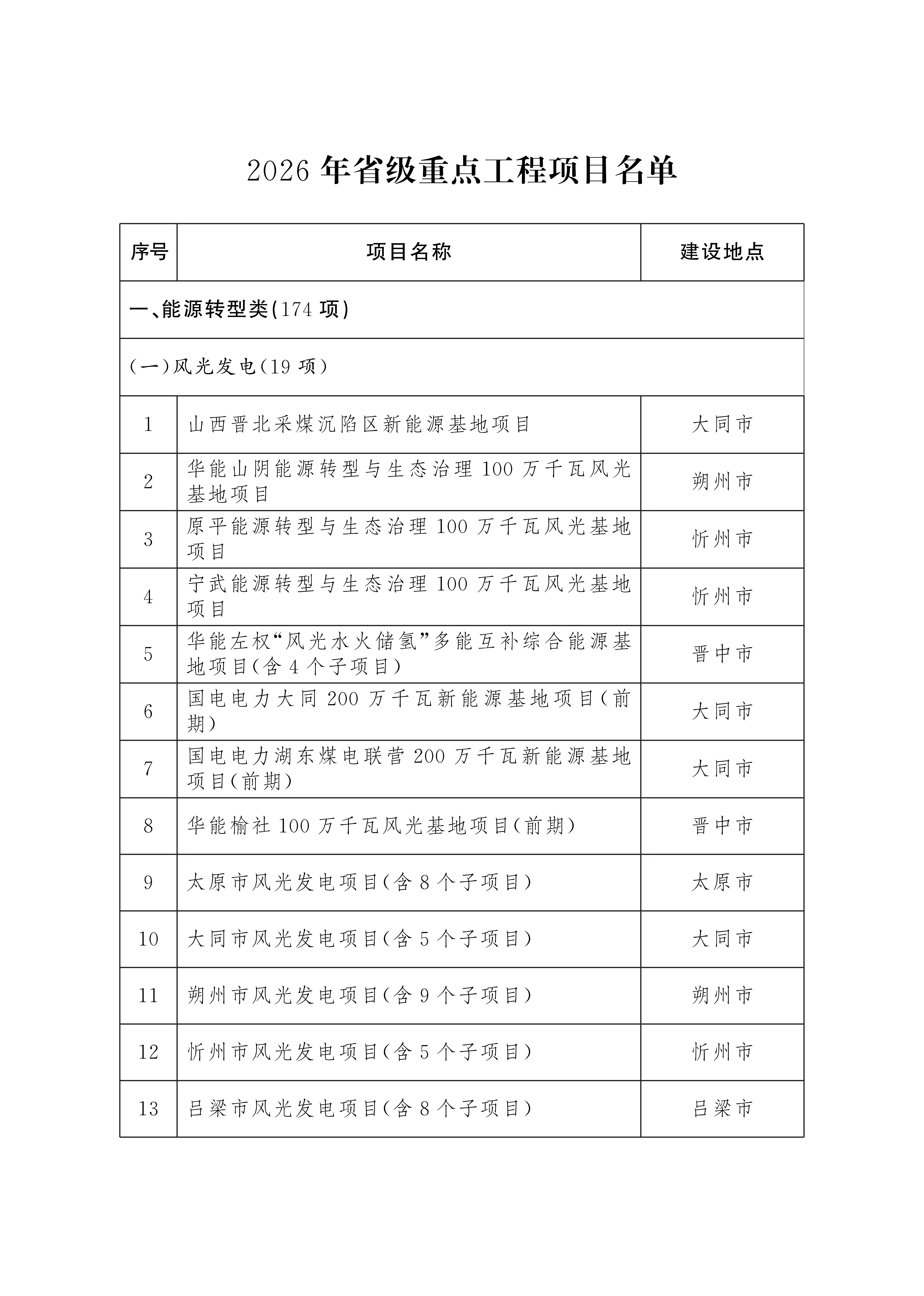 山西省人民政府办公厅关于印发2026年省级重点工程项目名单的通知