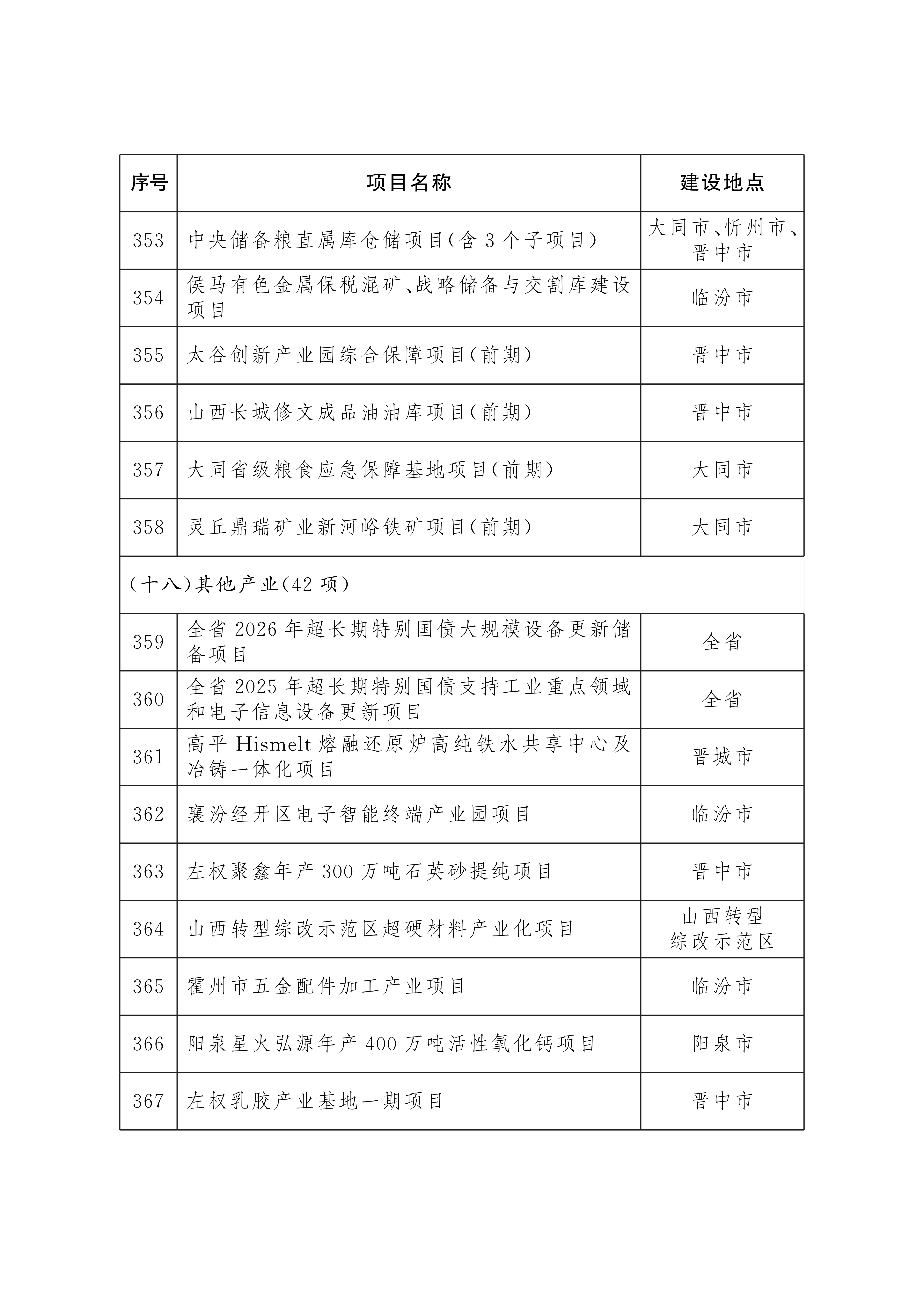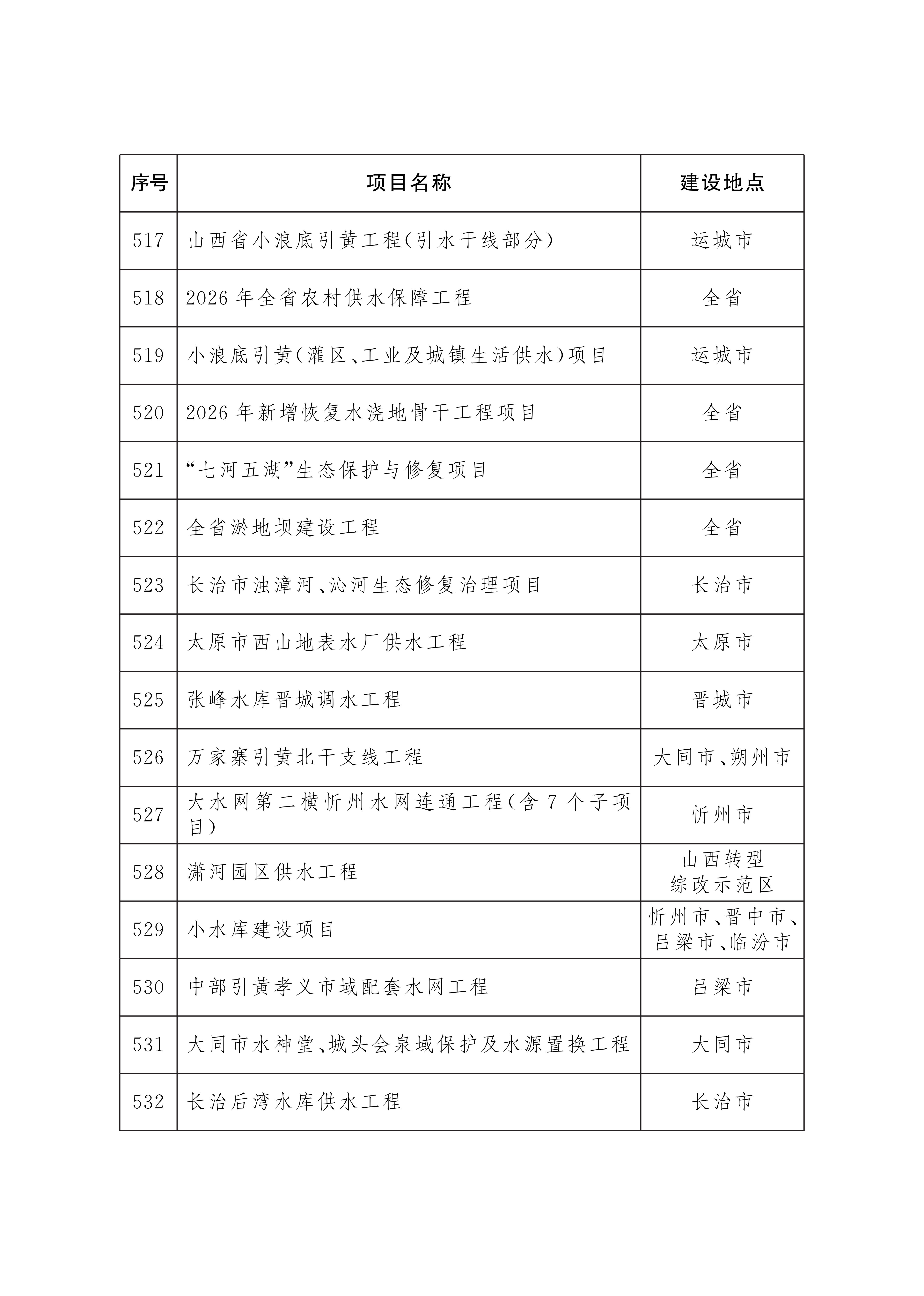 2026年省级重点工程项目名单已经省政府研究确定,现印发给你们,请按照山西省重点工程项目总指挥部工作要求,强化服务保障,协调落实建设条件,做实项目调度推进,确保项目顺利实施。项目建设中确需占用耕地的,要严格落实占补平衡和进出平衡。省级重点工程项目实行动态管理,可根据工作需要和项目实施情况,按程序进行调整补充。