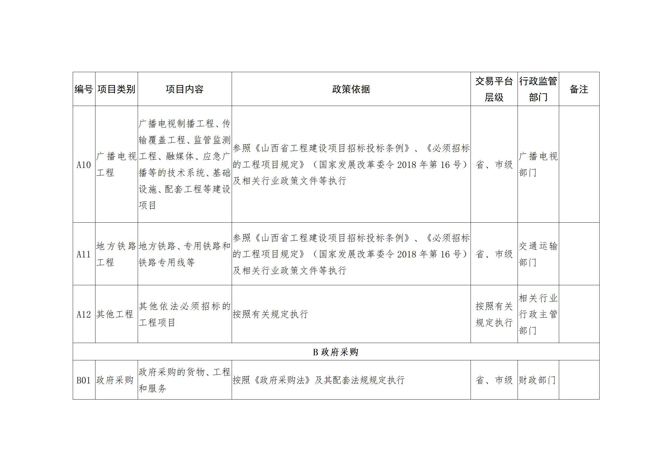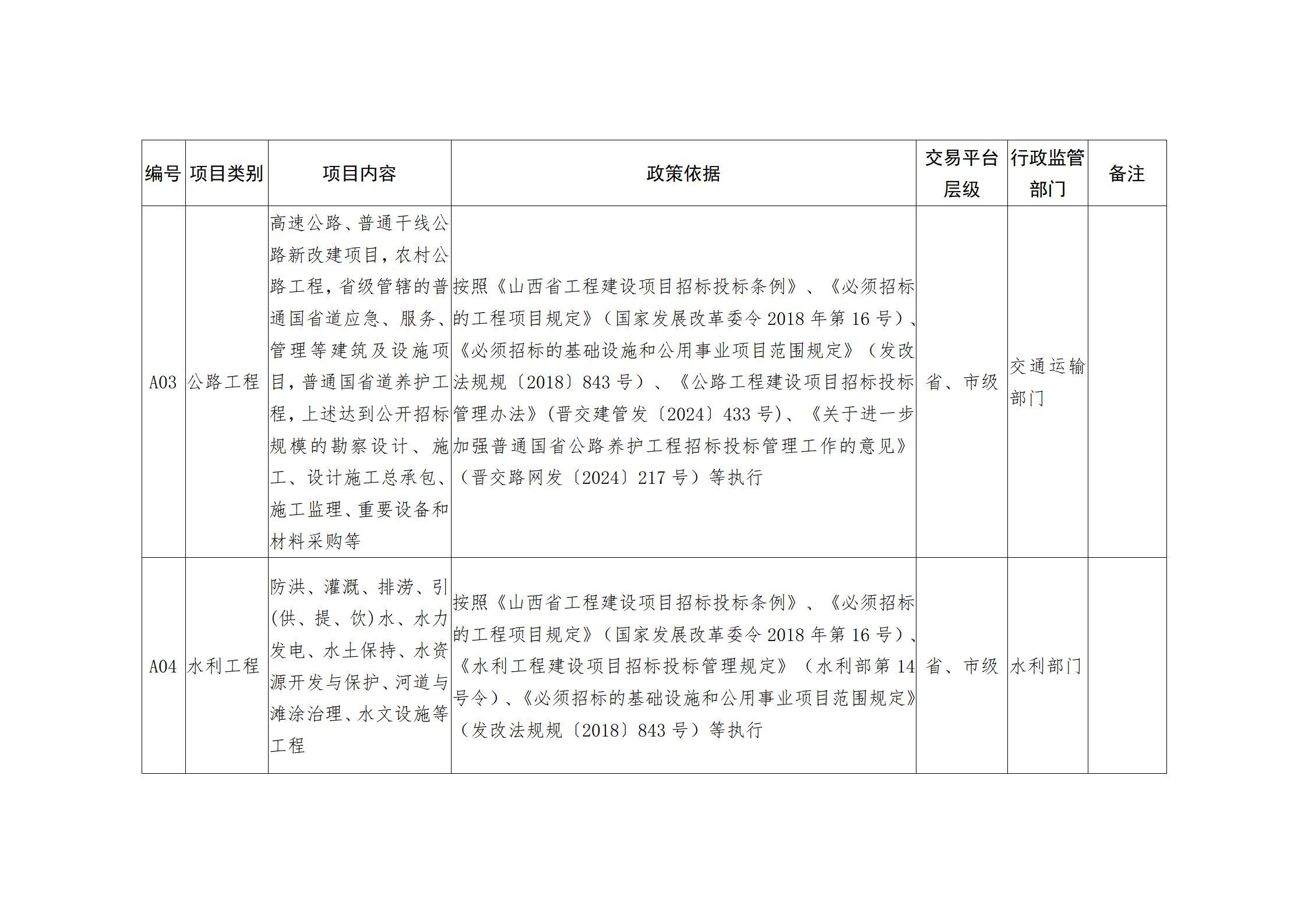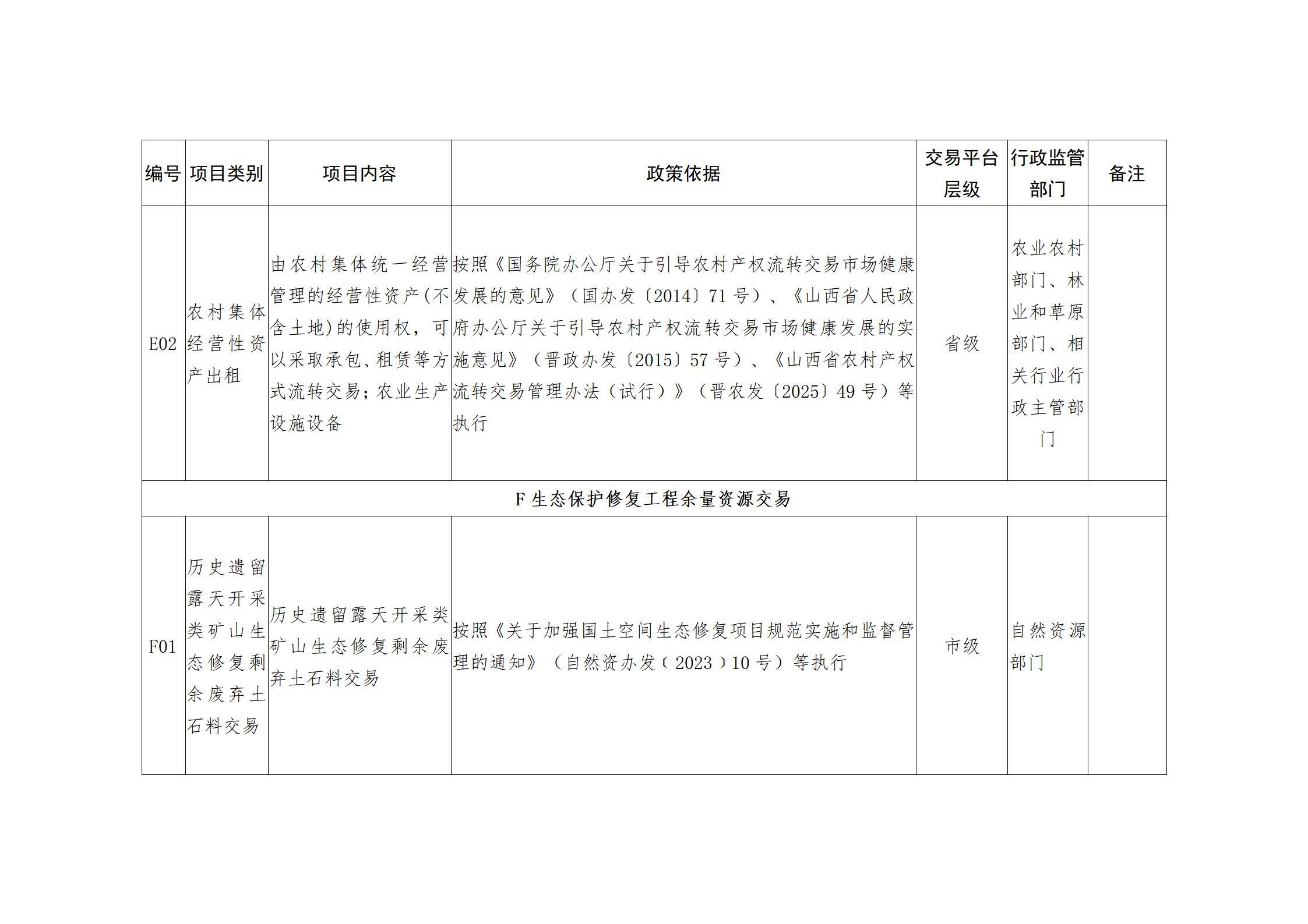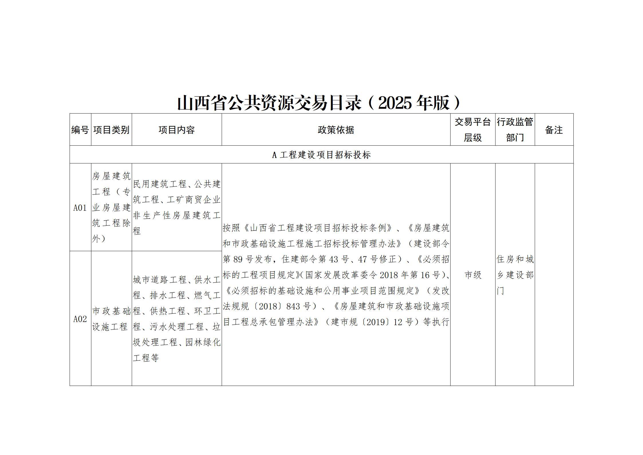 山西省人民政府办公厅关于印发山西省公共资源交易目录(2025年版)的通知