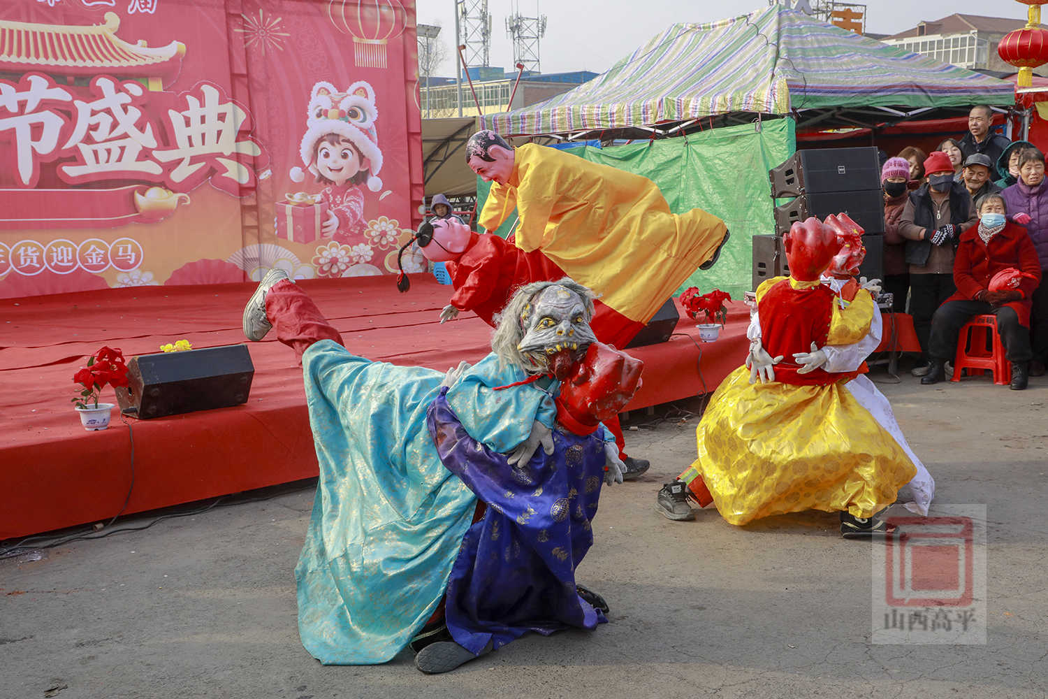 年货市集烟火气十足,精彩纷呈的文艺节目轮番上演,更是让村民们在家门口提前感受到了过年的欢乐氛围。“咚咚锵、咚咚锵……”上党八音会奏响,激昂的鼓点敲出了新春的热闹氛围。喜庆的扇舞表演,舞出了人们对新春的美好期盼。萌娃贺马年、二鬼摔跤、变脸等表演好戏不断,为村民带来了一场兼具民俗韵味与节日欢乐的文化盛宴。
