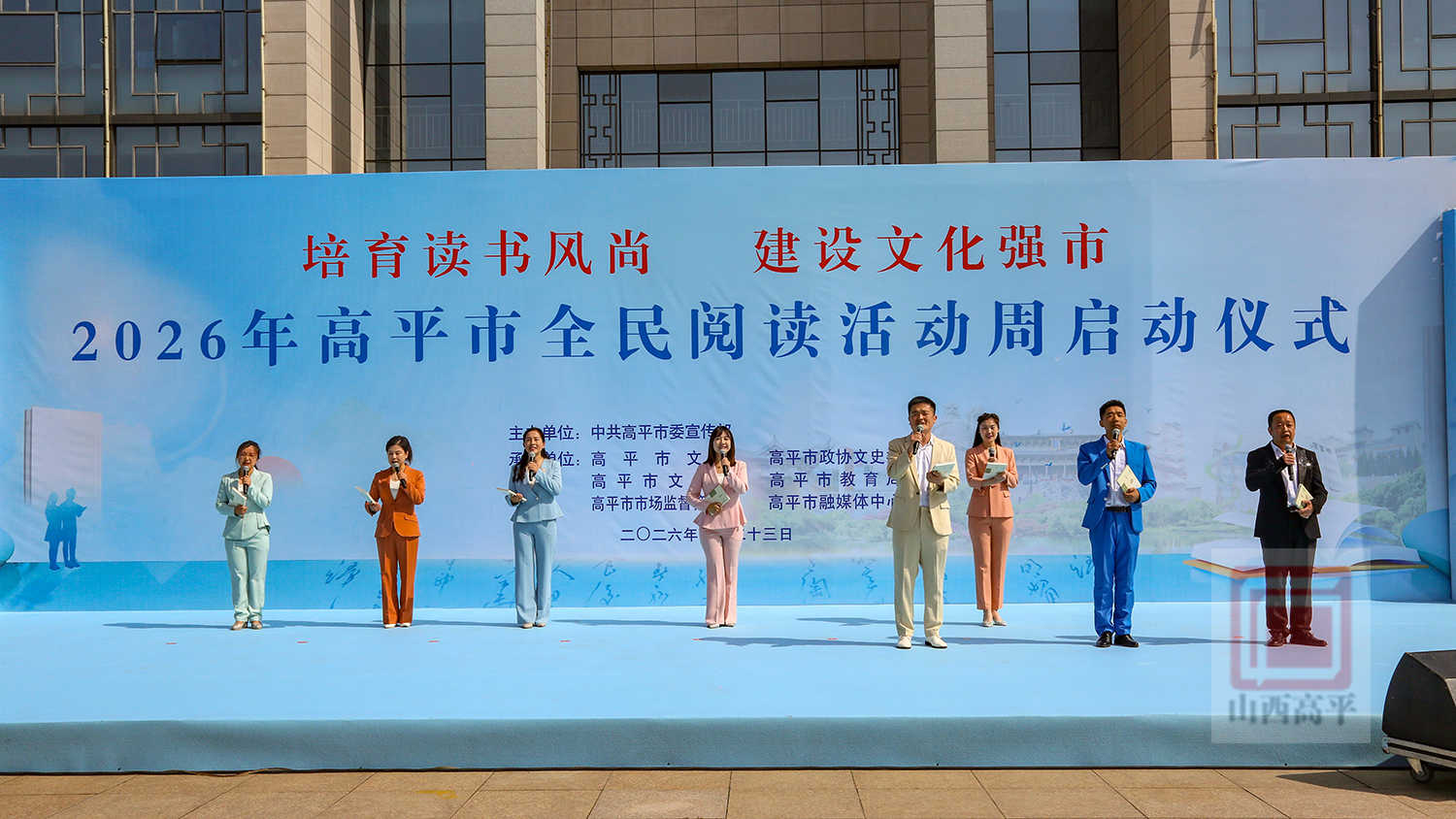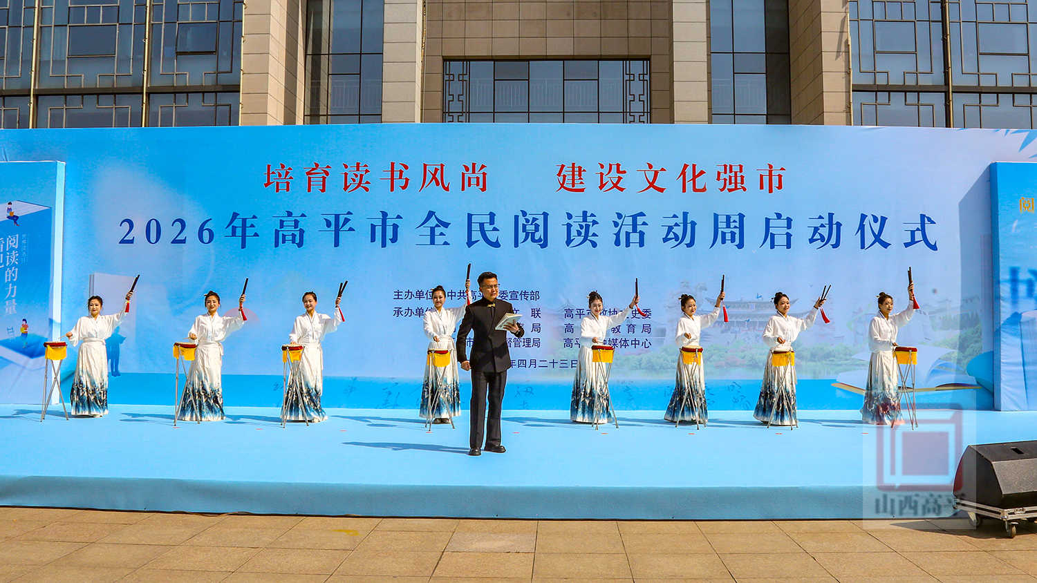 活动以“培育读书风尚 建设文化强市”为主题,由市委宣传部主办,市文联、市政协文史委、市文旅局、市教育局、市市场监督管理局、市融媒体中心承办。活动现场宣读了《高平市2026年全民阅读活动方案》。随后,进行了精彩的文艺节目展演。童声合唱《小雅·鹿鸣》清澈悠远,唱出了经典诗文的古雅气韵;朗诵《高平八景》深情款款,勾勒出家乡山水的灵秀画卷;《读书好》则将高平鼓书的乡音乡韵与舞蹈艺术巧妙结合,生动诠释了“书中自有黄金屋,书中自有颜如玉”的朴实哲理。活动现场,气氛热烈、书香浓郁,引导大家多读书、读好书,让阅读成为一种生活方式。