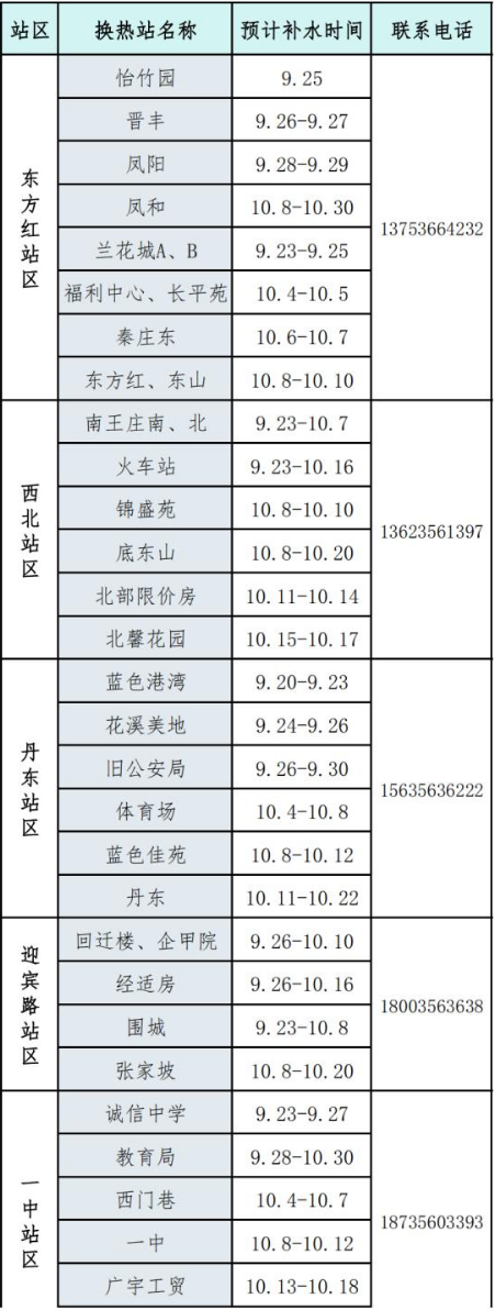 各区域的补水工作将提前2—3天张贴补水通知,具体补水时间以各区域通知为准,热用户一定要留意公告栏或显著位置张贴的补水通知。也可随时拨打供热专线0356—5252109、5226222或上图区域负责人联系电话。