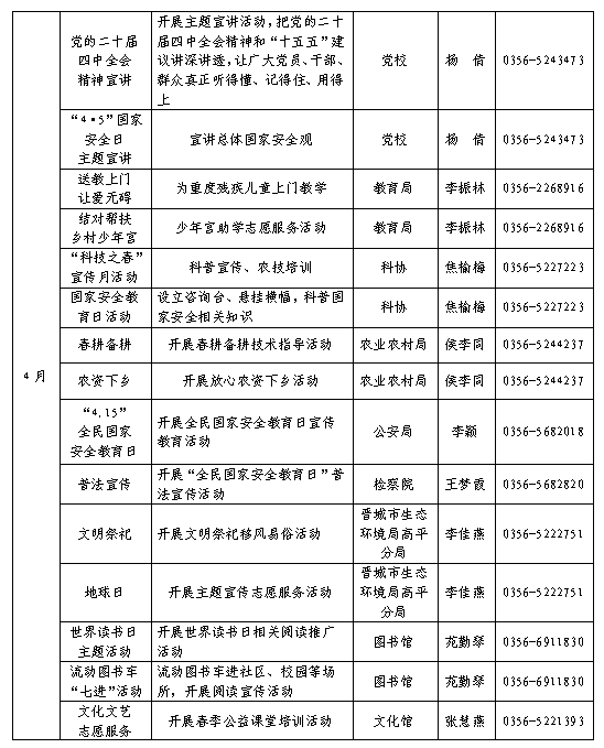 为扎实推进2026年高平市新时代文明实践工作,市新时代文明实践中心全面征集、系统汇总各志愿服务支队的文明实践计划,筛选代表性的活动,形成《2026年高平市新时代文明实践活动计划》。为使活动项目更好地服务于基层和广大群众,现将新时代文明实践活动计划予以公示。各单位和广大群众可通过电话、“今日高平”APP或直接到市新时代文明实践中心(所、站)及各单位“点单”,中心将及时予以“派单”,按群众需求在规定范围内推动实践活动项目落地基层、惠及群众。