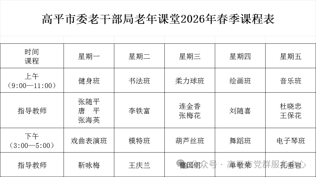 高平市委老干部局老年课堂2026年春季学期开始招生啦