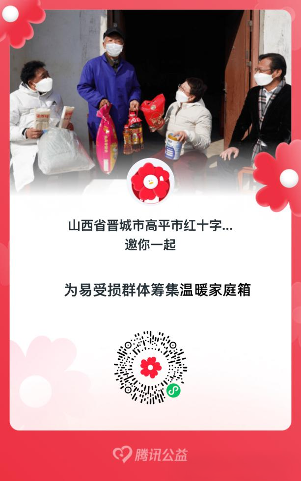1. 扫码进入页面。微信“扫一扫”,扫描高平市红十字会“一起捐”项目专属二维码,进入腾讯公益“一起捐”活动页面,页面将同步展示“博爱家园”和“温暖家庭箱”两个项目简介,明确善款用途。