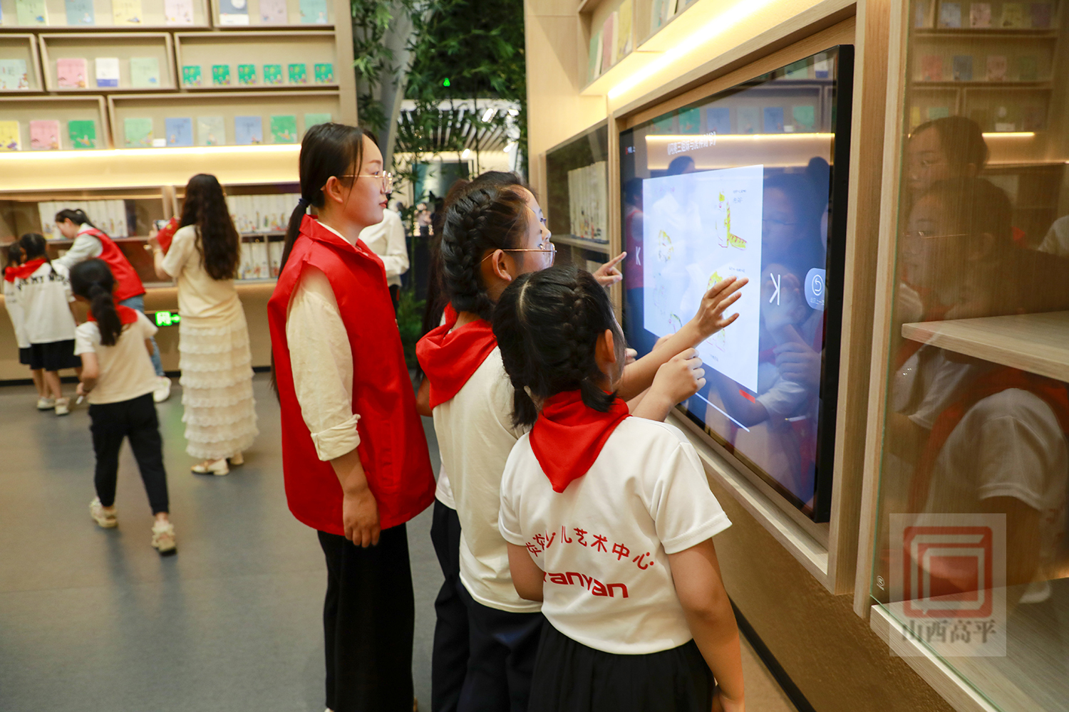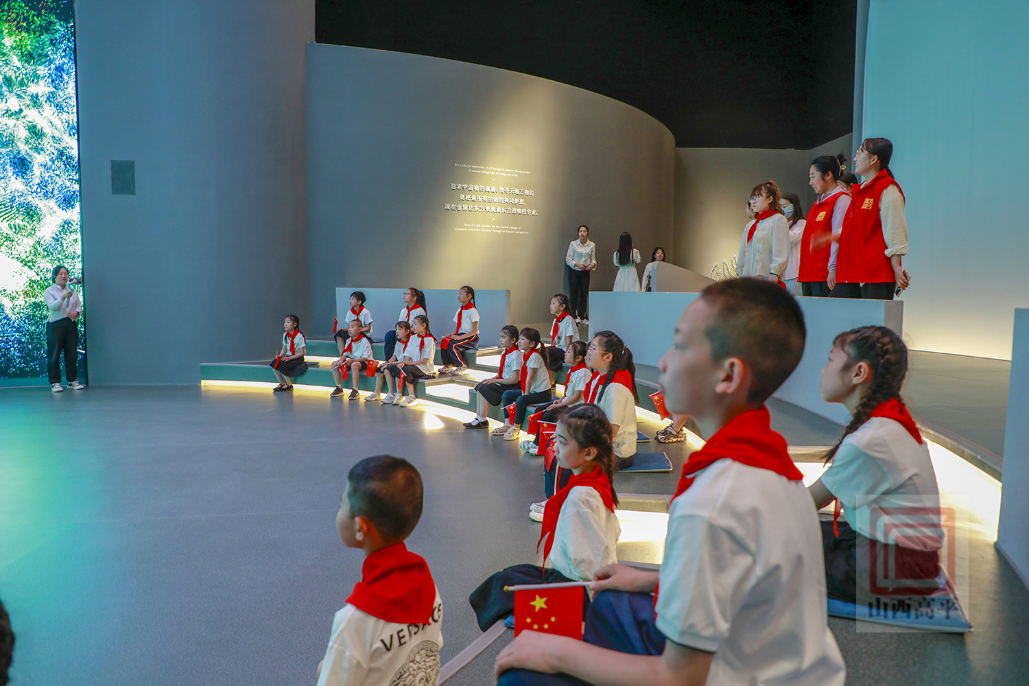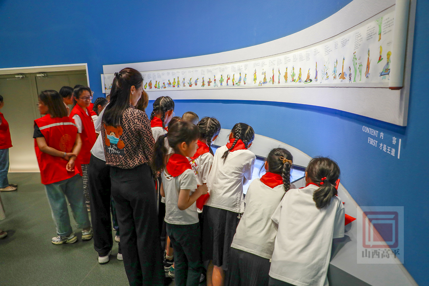河西镇下庄小学一年级学生郭思豫说:“来到2号展厅,就像来到了森林一样,很奇妙,很好玩。我还在爱心妈妈的帮助下完成了一幅绘画作品,感受到了温暖的关爱。”