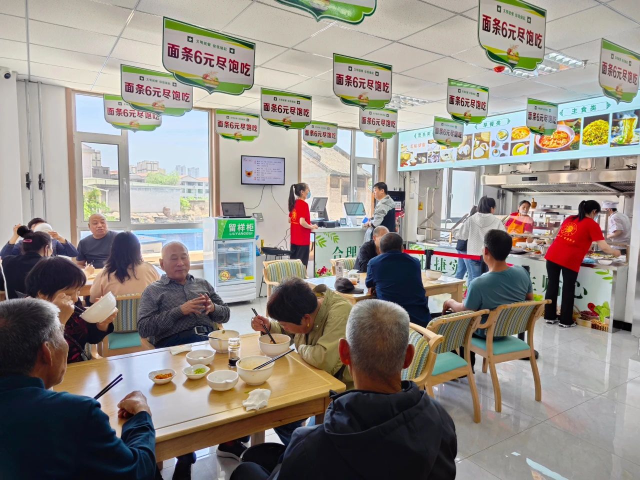 临近午餐时间,位于南城街街道圪塔社区养老服务中心内的社区食堂立刻热闹起来,工作人员将一盆盆热气腾腾、各式各样的菜品放进档口,即使隔着三五排桌子也能闻见诱人香味。老人们陆陆续续地来到这里就餐。